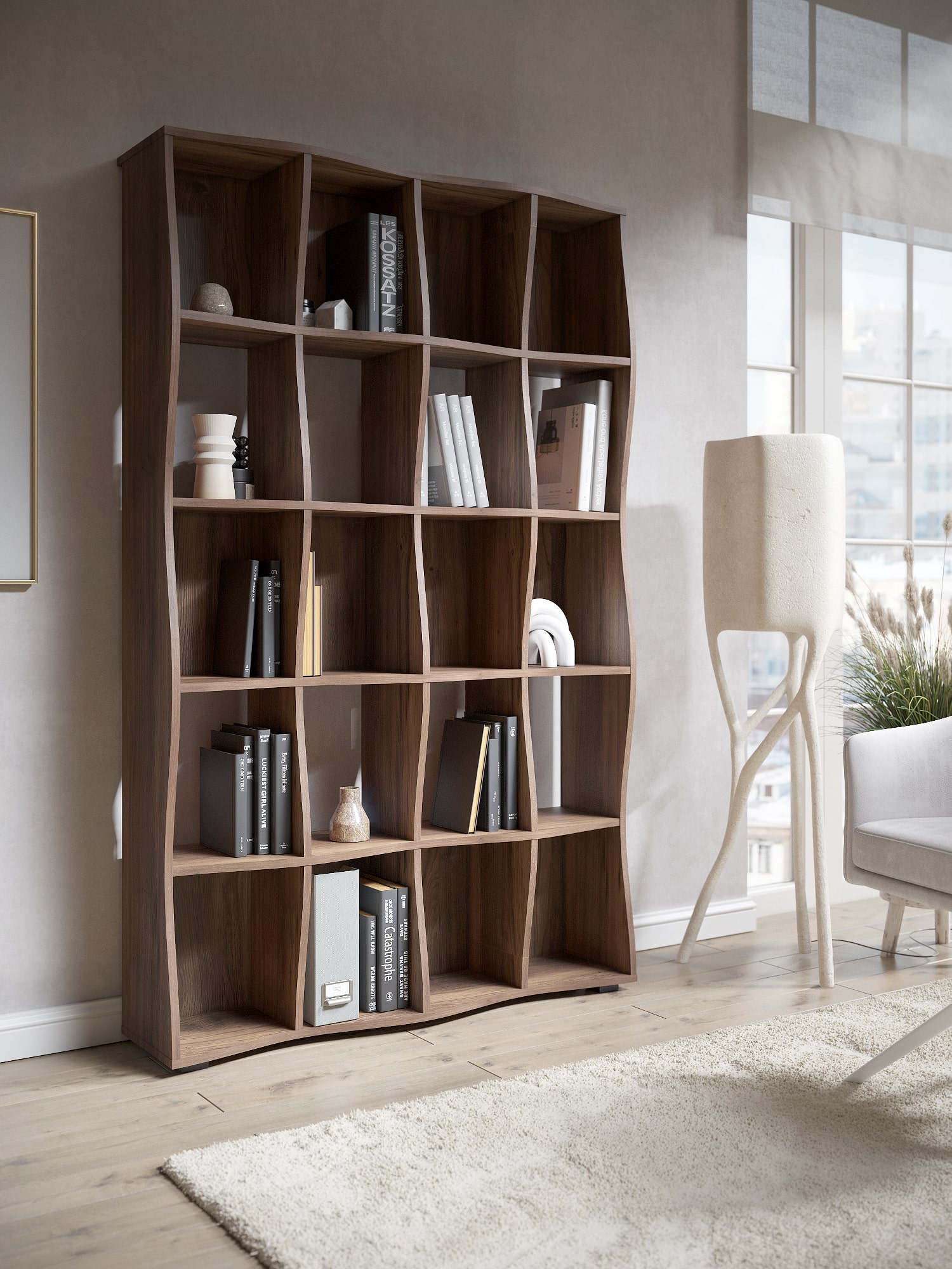 Функциональность: открытые полки для хранения книг, аксессуаров и декора.