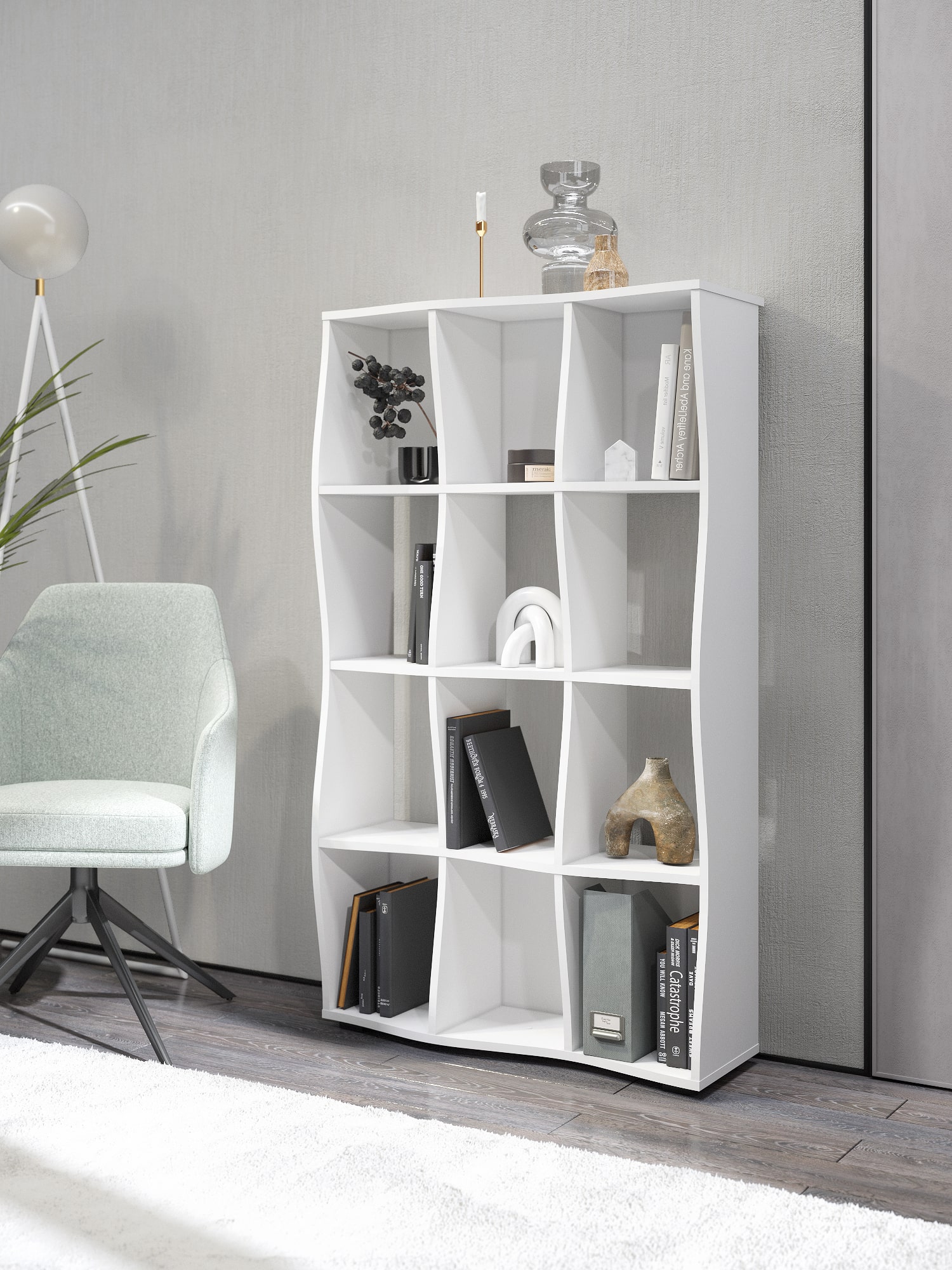 Функциональность: открытые полки для хранения книг, аксессуаров и декора.