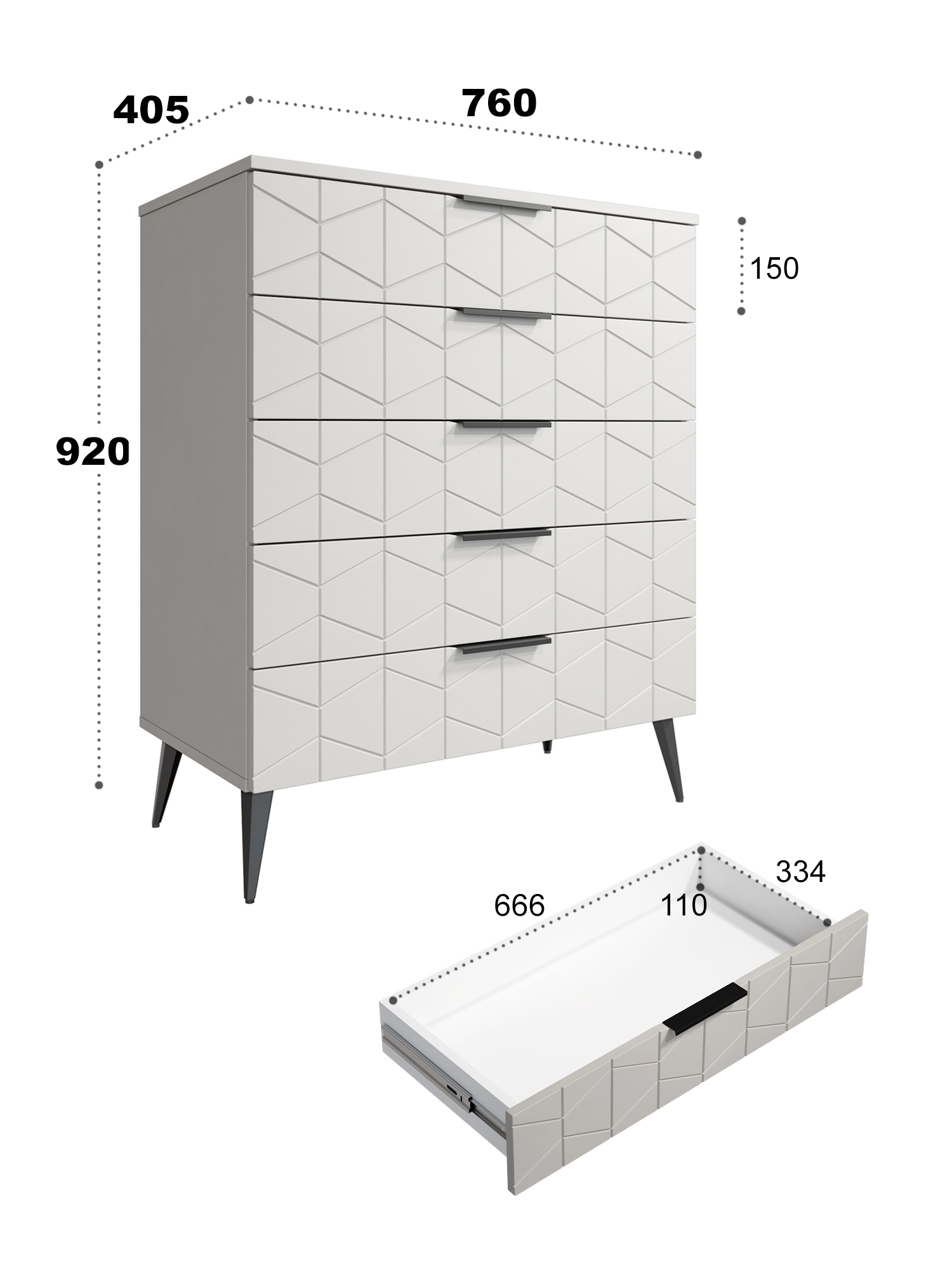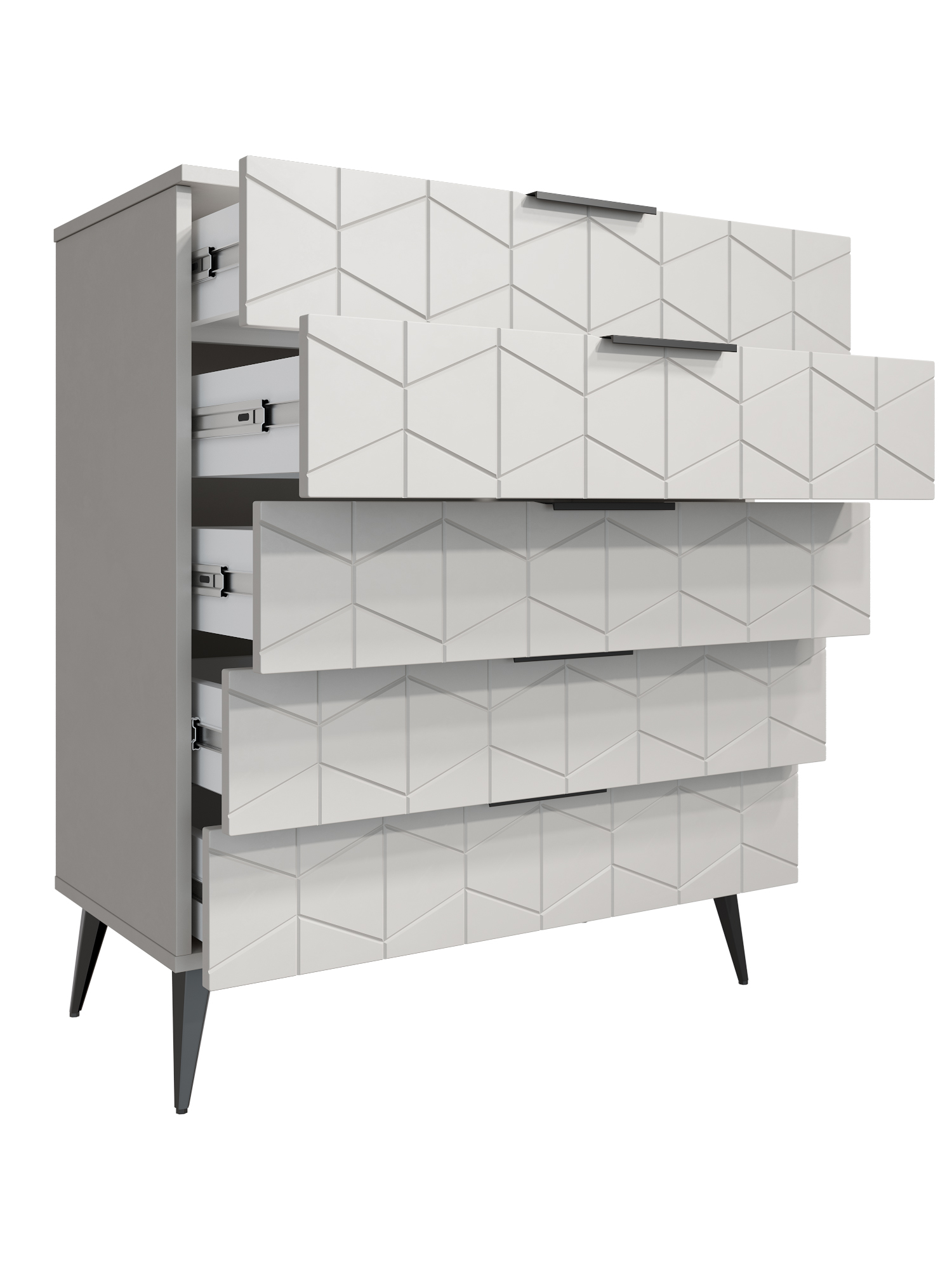 • Пять выдвижных ящиков на телескопических направляющих