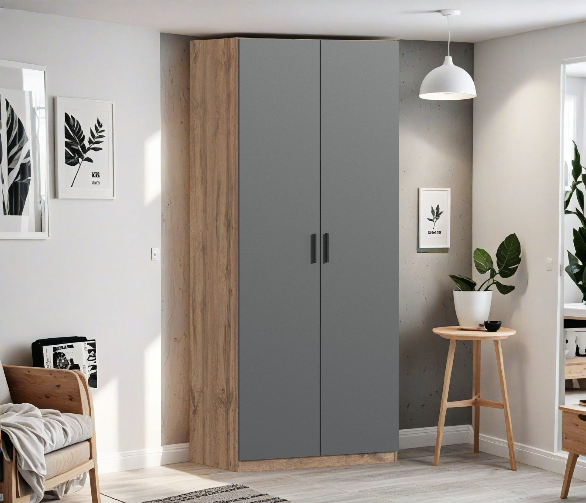 Шкаф двухдверный Макс 1000 мм, вариант №1 (ЛДСП, корпус дуб вотан) (Диамант серый)