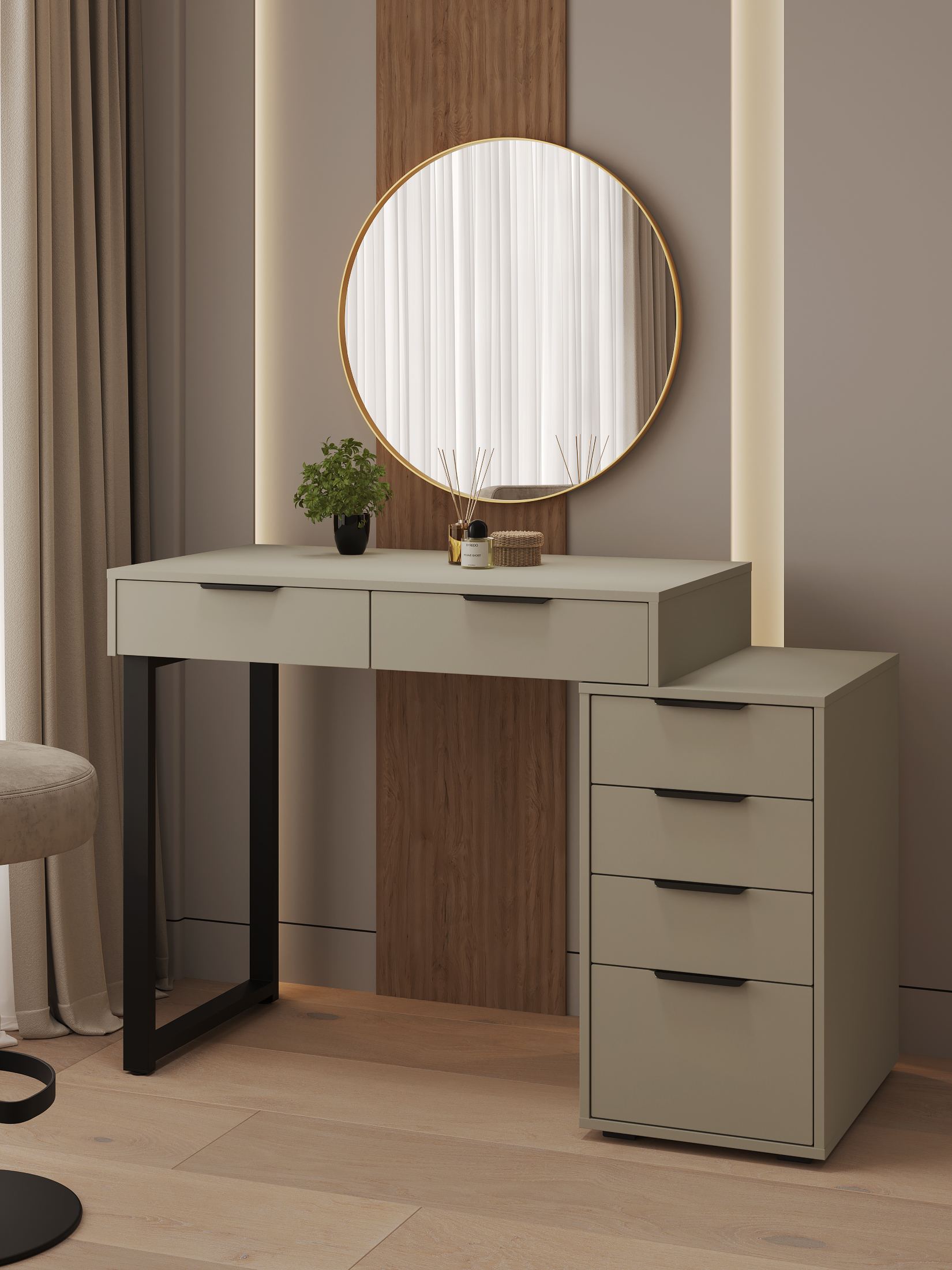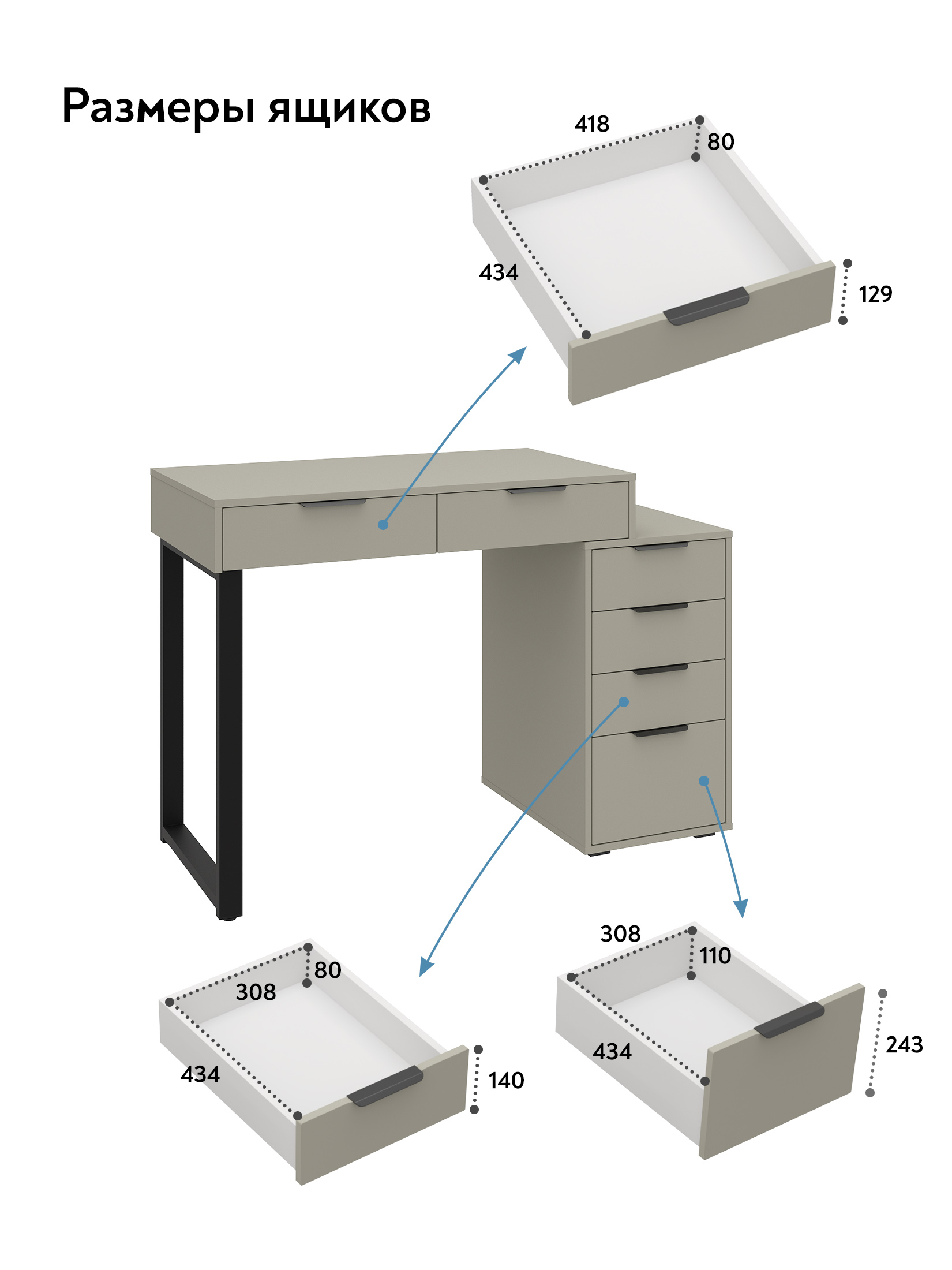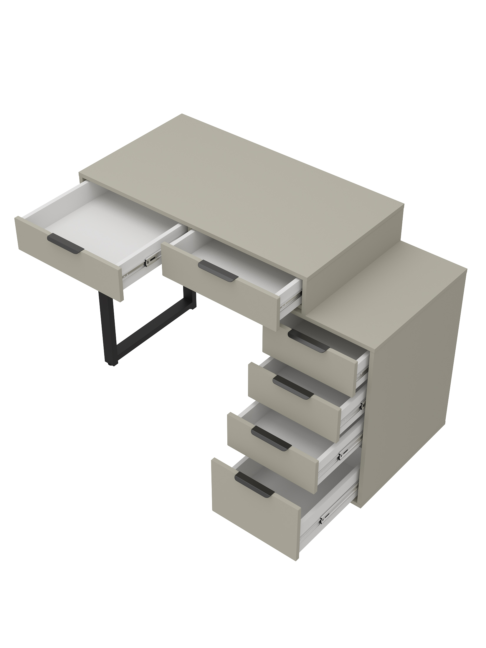 Универсальность: подходит для использования в качестве письменного, компьютерного или маникюрного стола. Рекомендуется высокий стул. Фурнитура: телескопические направляющие полного выдвижения без доводчиков, металлические ручки и опора.