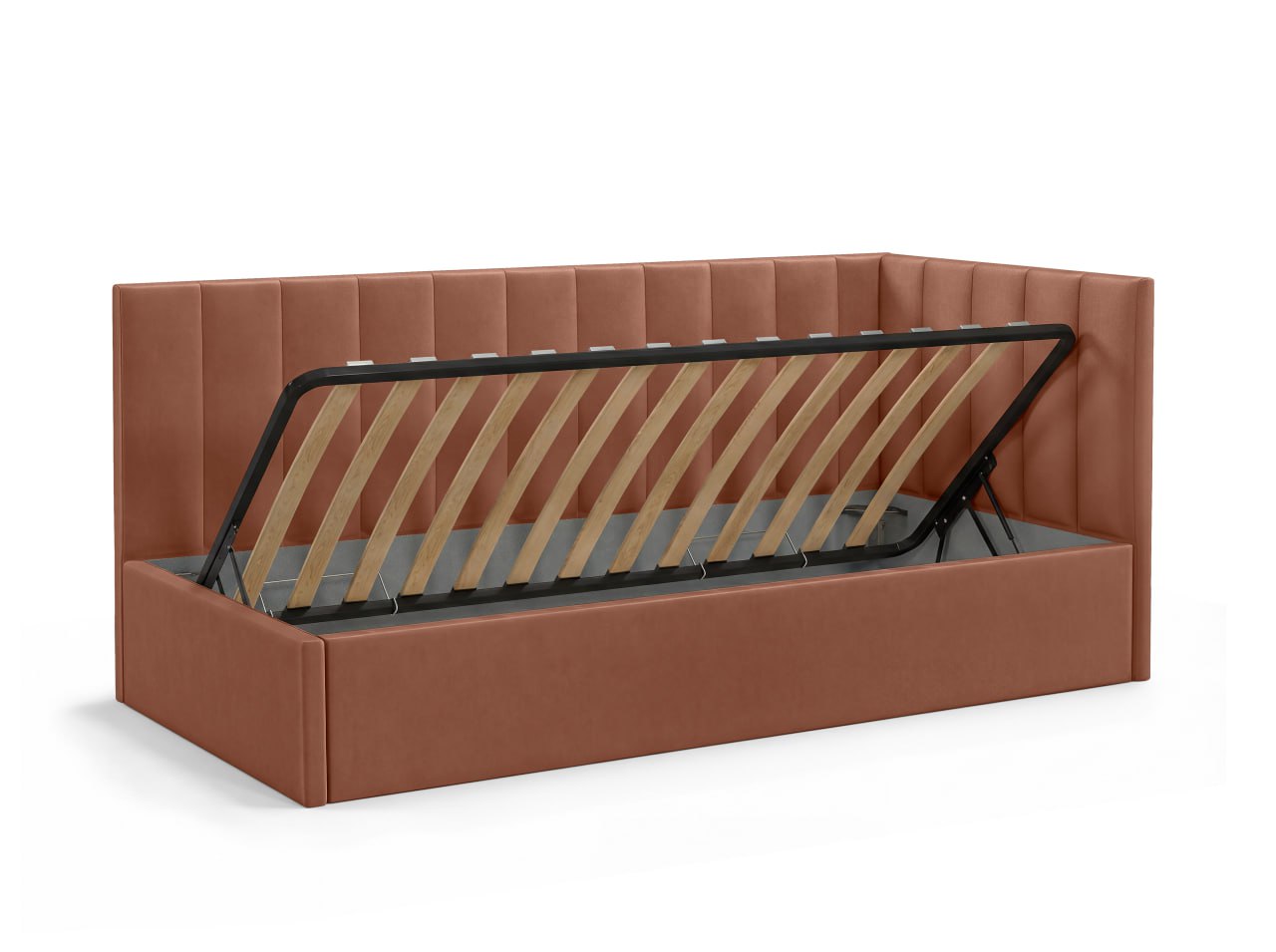 KID — больше, чем односпальная кровать. Это уют, который нравится детям, и, практичность, которую ценят родители. Мягкие линии, современная эстетика и комфортная спинка делают её идеальной для сна, отдыха и чтения. Она создана для ежедневного использования. Кровать не перегружает пространство и визуально сохраняет лёгкость в комнате. Комфортная спинка — удобно опираться во время чтения или отдыха. Размер: 2140*1050*920см (д*в*ш), спальное место (размер матраса): 90×200 см — оптимальный формат для ребёнка и подростка, который растёт, а, также, для отдыха взрослого человека, для гостевой комнаты. Подъёмный механизм: есть. Прочная сварная ортопедическая решетка. Бельевой ящик: есть. Опоры: пластик. Каркас: брус/фанера/ДСП. Наполнение каркаса и спинок: ППУ. Ткань - велюр с трендовой цветовой палитрой. Угол универсальный (право/лево). Задняя стенка изголовья выполнена из технической ткани. Качество материалов: в конструкции используются качественные материалы и надёжные элементы, рассчитанные на активную ежедневную эксплуатацию, чтобы кровать сохраняла форму и комфорт в течение долгого времени. Матрас приобретается отдельно, с необходимыми свойствами (пружинный, безпружинный, с нужным уровнем допустимой нагрузки, жесткостью, наличием нужных слоев), рекомендуемая высота - 21-23 см. Комплектация: 3 пакета. Вес - 69 кг.