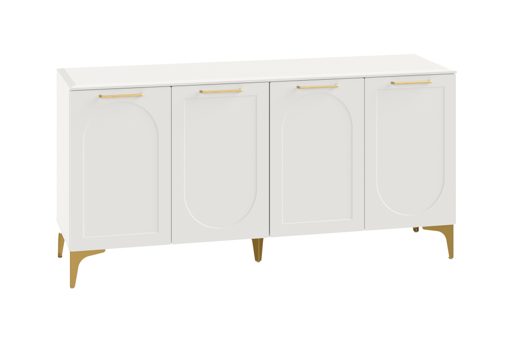 Фасады с фрезеровкой и верхняя крышка из МДФ сочетаются с металлическими ручками и опорами, создавая притягательный акцент в интерьере..
