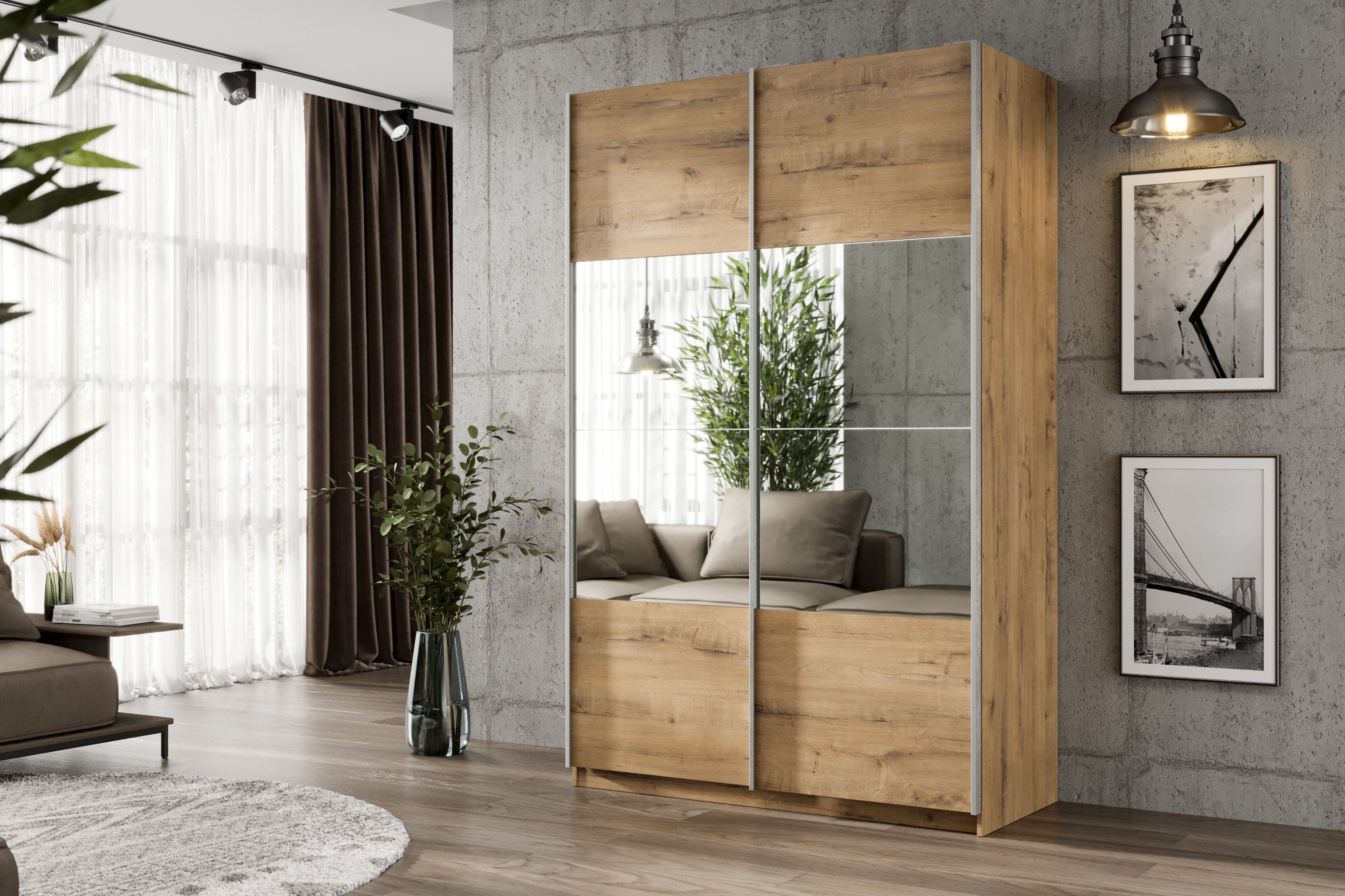 Шкаф-купе Smart 1624 2х дверный (фасады ЛДСП/зеркало) профиль серебро (Бунратти)