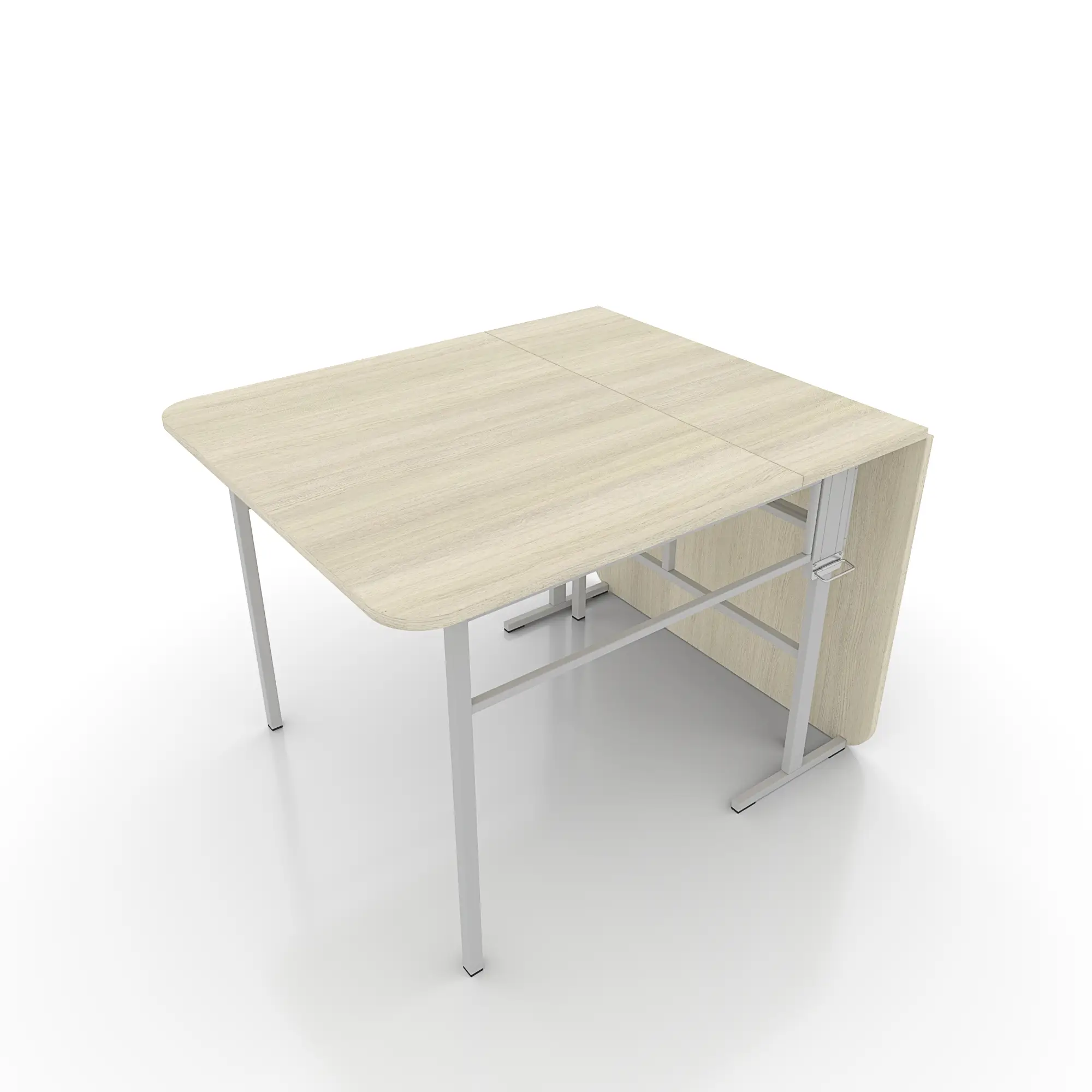 Каркас стола выполнен из металлических профилей, покрытых полимерной эмалью. Это обеспечивает долговечность и устойчивость конструкции. Столешница изготовлена из ЛДСП толщиной 16 мм, торцы столешницы защищены 1 мм кромкой из ПВХ.
