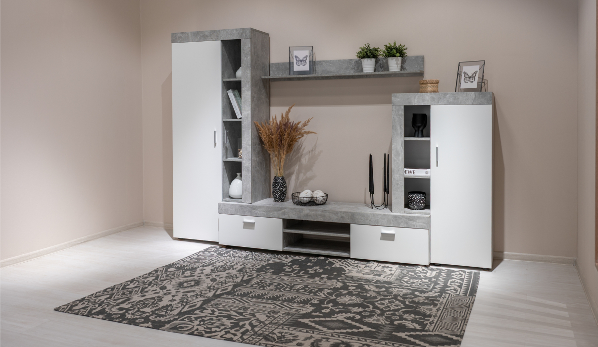 Стенка «Орфей» – яркий представитель стиля минимализма. Стилистическим акцентом являются утолщенные линии корпуса, которые придают выразительность и брутальность стенке. Природная гамма цветов декора – теплый «дуб сонома» и прохладный «белый» создают комфортное светлое пространство. В стенке предусмотрены открытые и закрытые отделения для хранения вещей, медиааппаратуры и TV. Полноценный платяной шкаф с выдвижной поперечной штангой дополнительно можно укомплектовать полками. Материалы стенки экологически чисты и безопасны.