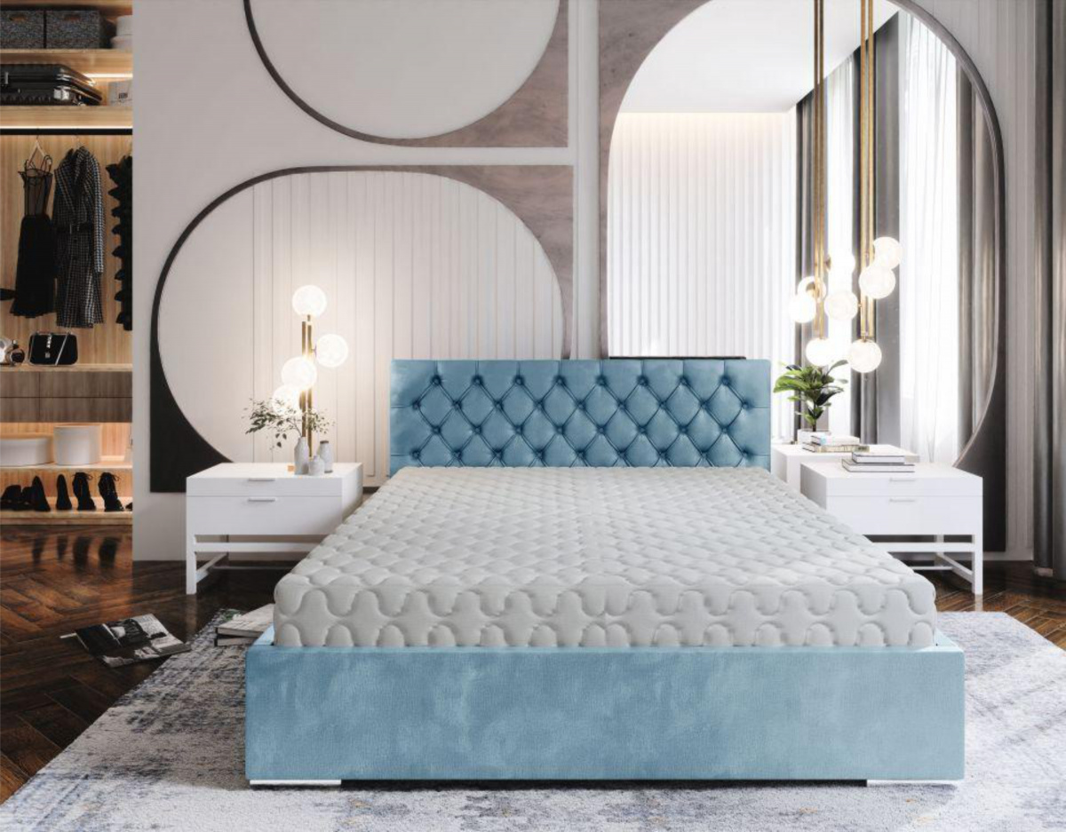 Кровать Бельгия в базовых тканях, с основанием и с подъемным механизмом, 160х200 (Велюр голубой) Код I0000455915