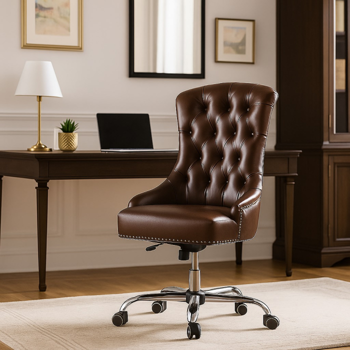 Обивка выполнена из премиальных материалов — вы можете выбрать ткань или кожу в зависимости от стиля помещения и личных предпочтений. Качественная отделка подчёркивает статусность стула и гарантирует его долговечность.