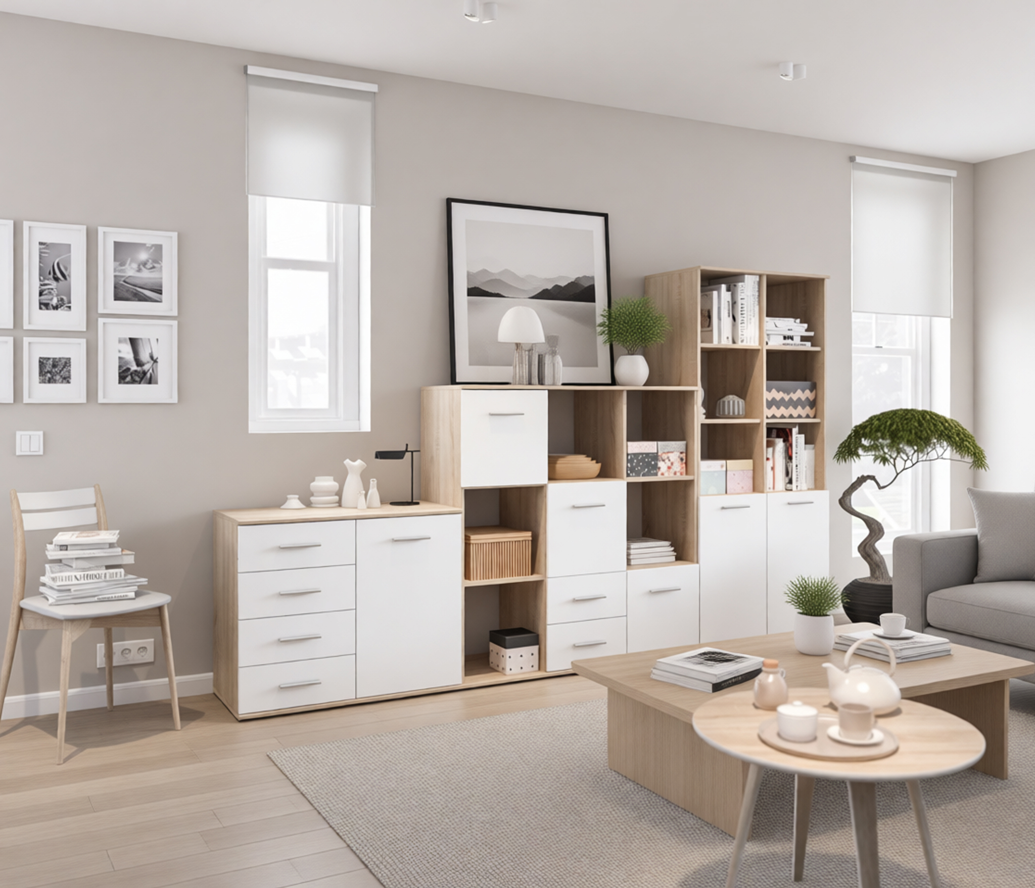 Габаритные размеры – ширина 78 см, высота 176 см и глубина 44 см. Конструктивно стеллаж состоит из нескольких вместительных открытых полок и из отделения с непрозрачными дверцами.Модель производится из современного материала КДСП. Отделка комбинированная – корпус в цвете «Дуб Сонома», фасадные поверхности белые.