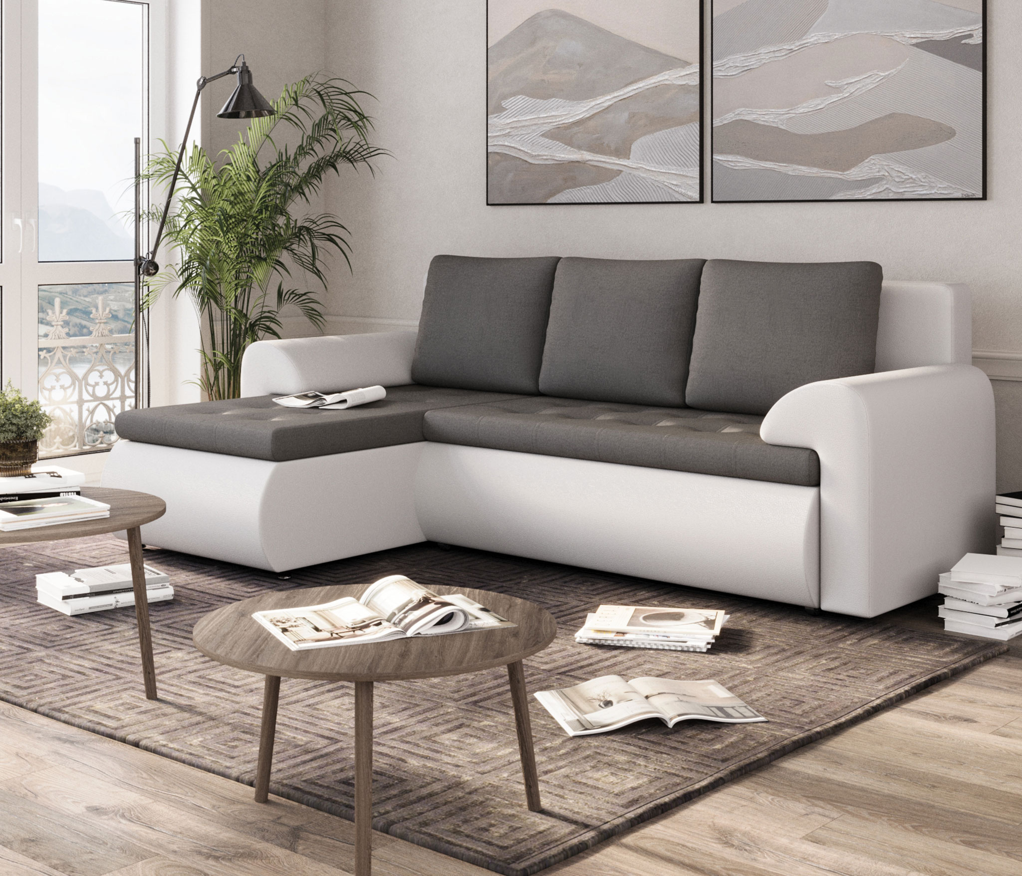 Отзывы о Столплит Угловой диван Цезарь (левый) рогожка/экокожа Серый