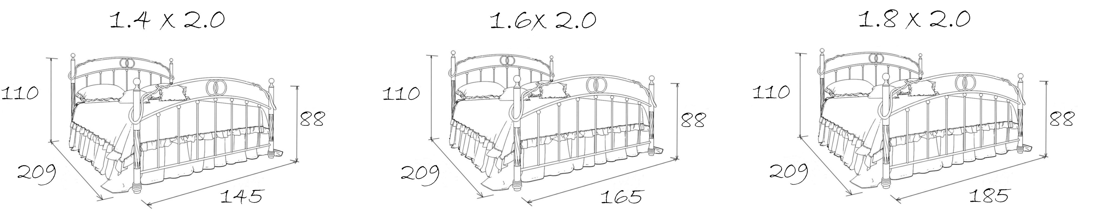 Размеры спального места (ДхШ) 2000х1800, высота изножья 880 мм, максимальная нагрузка на 1 спальное место - 150 кг.