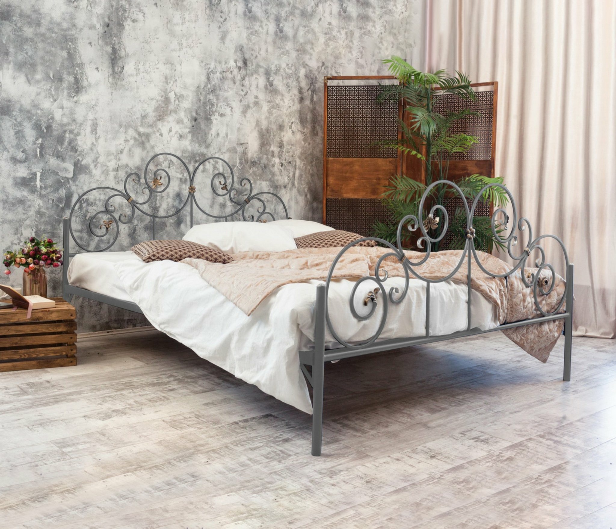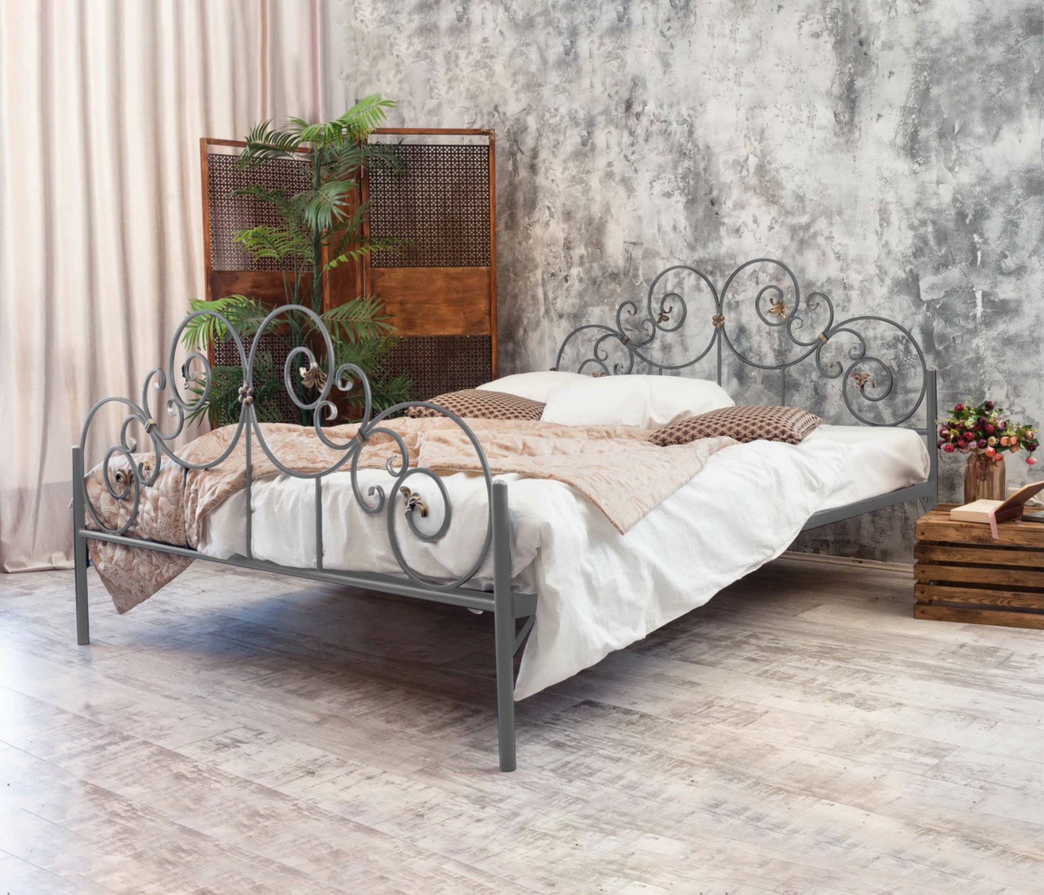 Кованая кровать Афина 1.8 с двумя спинками (Серый)