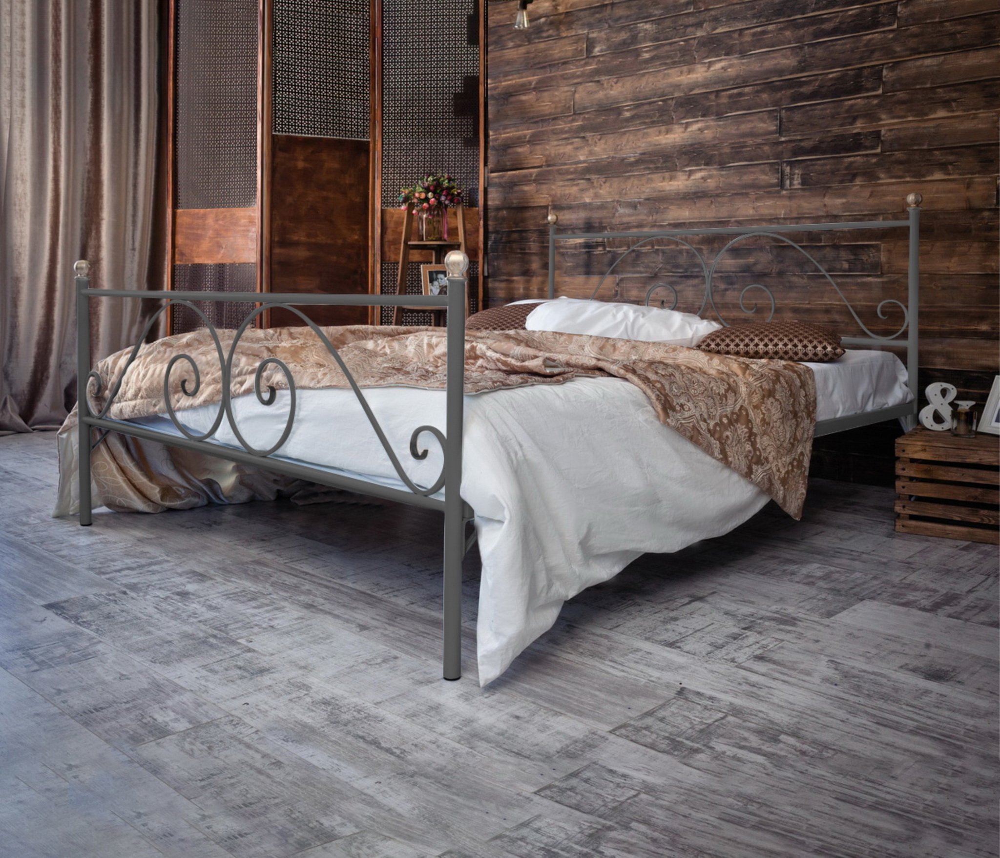 Кованая кровать Анталия 1.6 с двумя спинками (Серый)