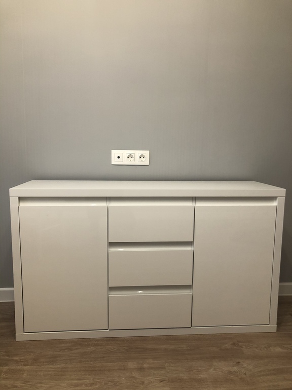 Комод стильно смотрится, сразу вписался в наш интерьер. По качеству вопросов нет, но! Кто придумал заднюю панель тупо прибивать на гвозди?! Зачем? Есть же уже другие способы крепления. Например фрезерованные выемки в боковых стенках. Это удобно, быстро и без проблем. Собирается он без каких то трудностей, один справился.