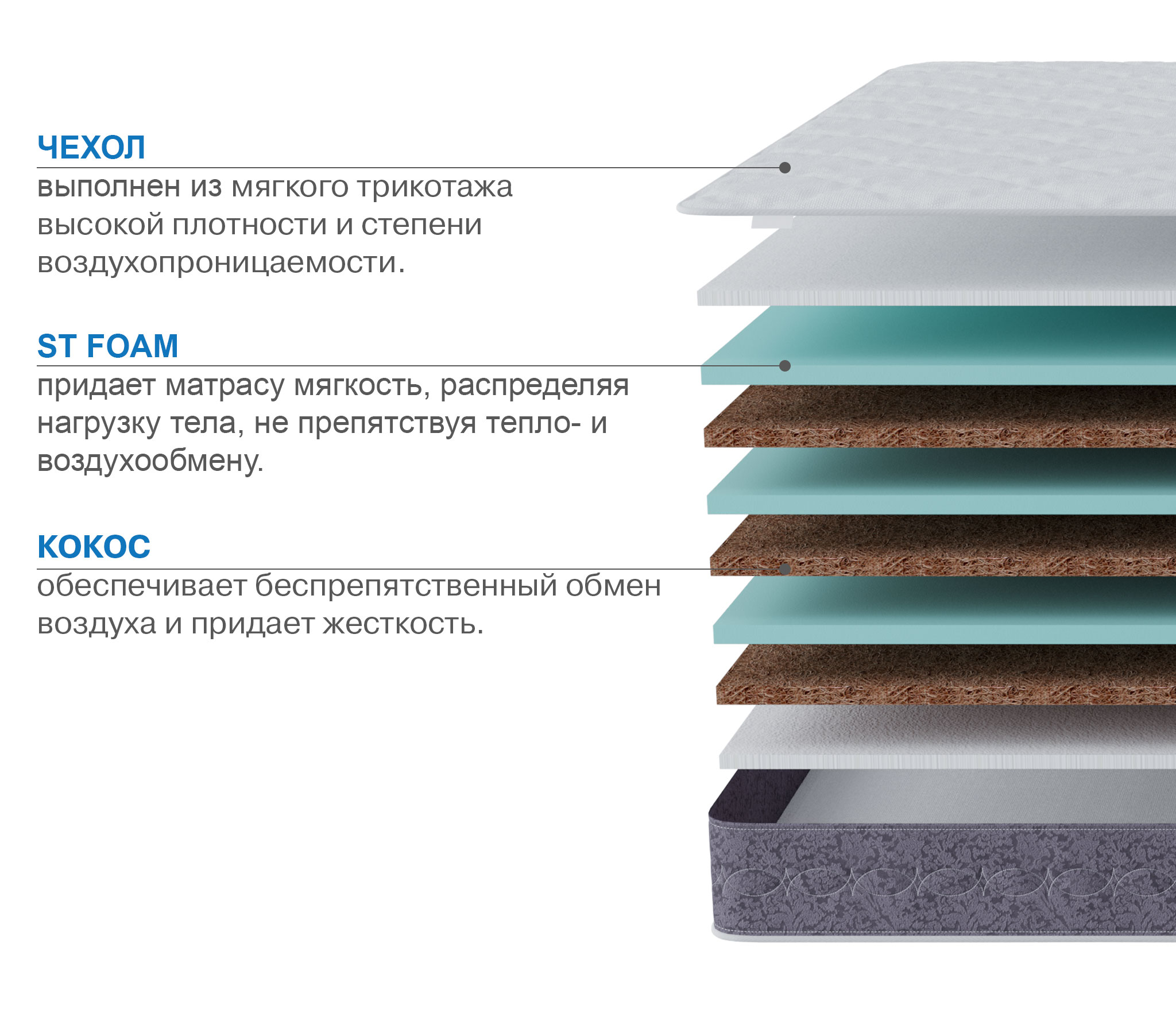 Матрас аналогичен по наполнению матрасу Вита, с той лишь разницей, что здесь 6 слоев, а не 10, как в Вите. Матрас идеально подойдет для детских и молодежых кроватей, а также для всех типов кроватей, у которых боковые царги не сильно выступают над плоскостью ортопедического основания.