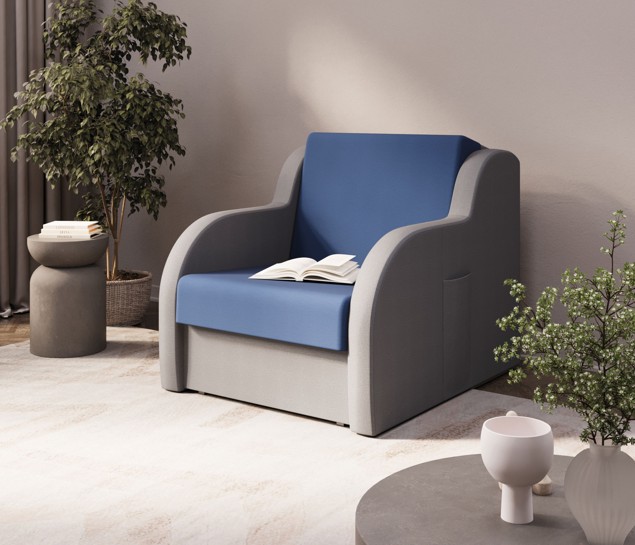 Кресло-кровать Ремикс 1, рогожка (Синий)