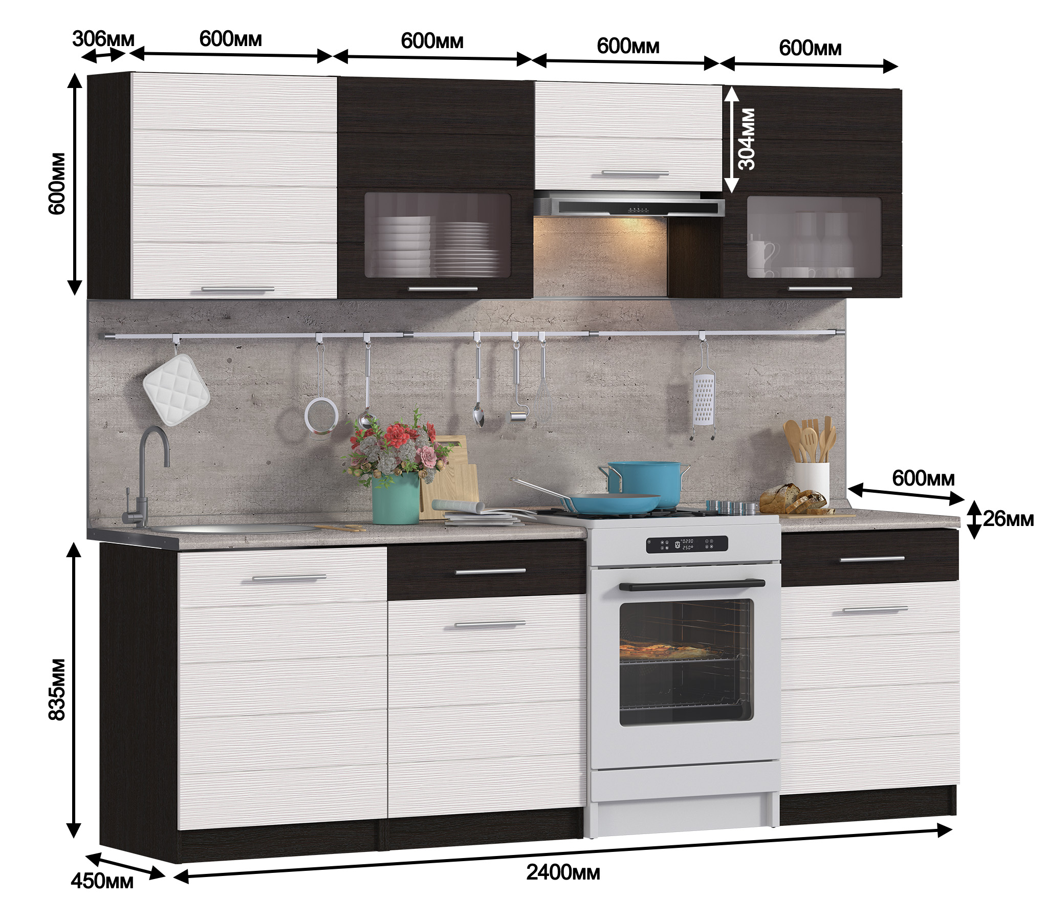 Размер всего гарнитура - 2400 мм