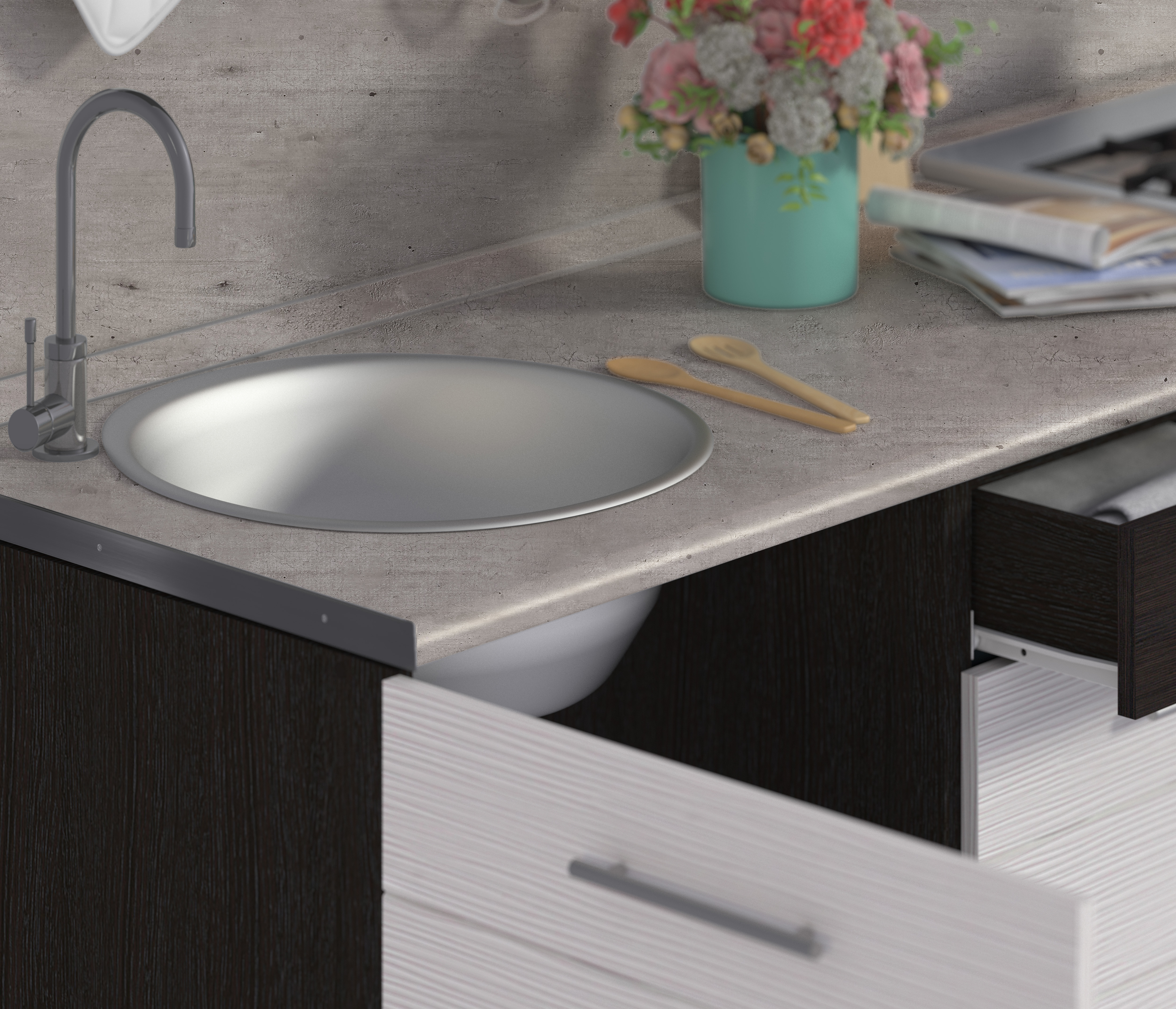 - Мойка круглая врезная, d 51 см;