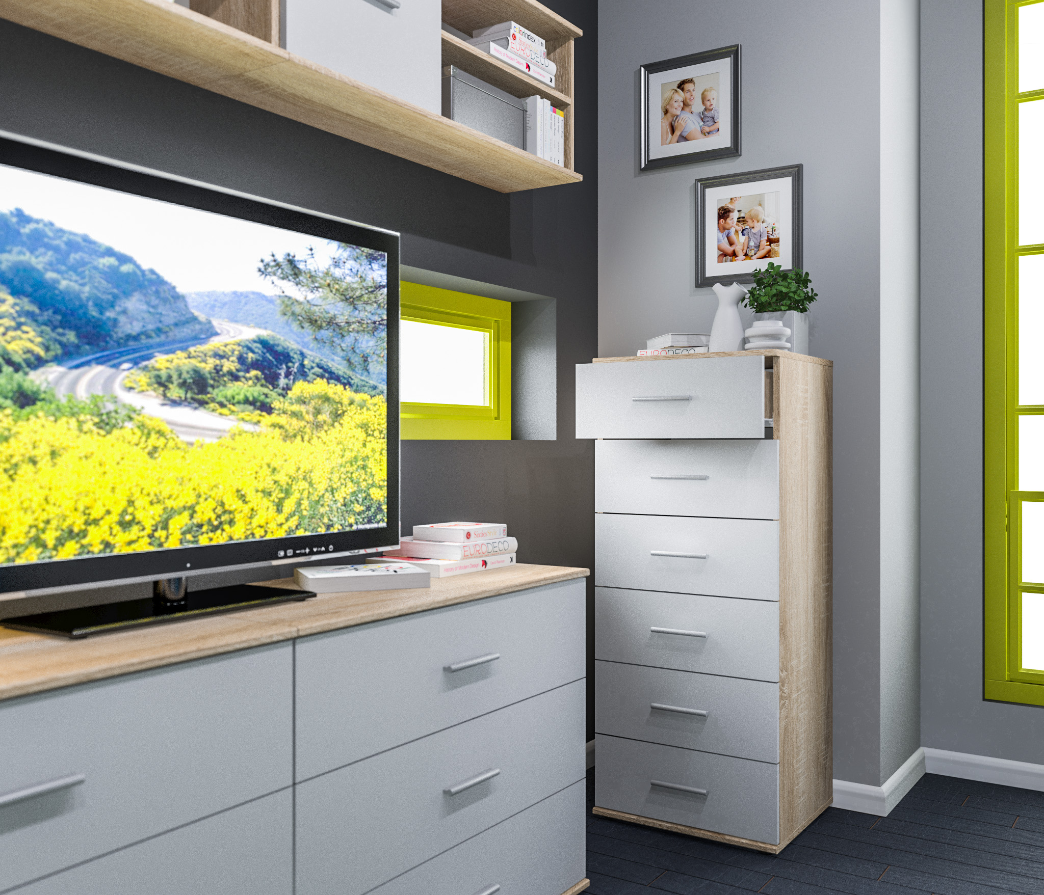 Комод Мамбо СБ-2540 (Дуб Сонома, Белый)