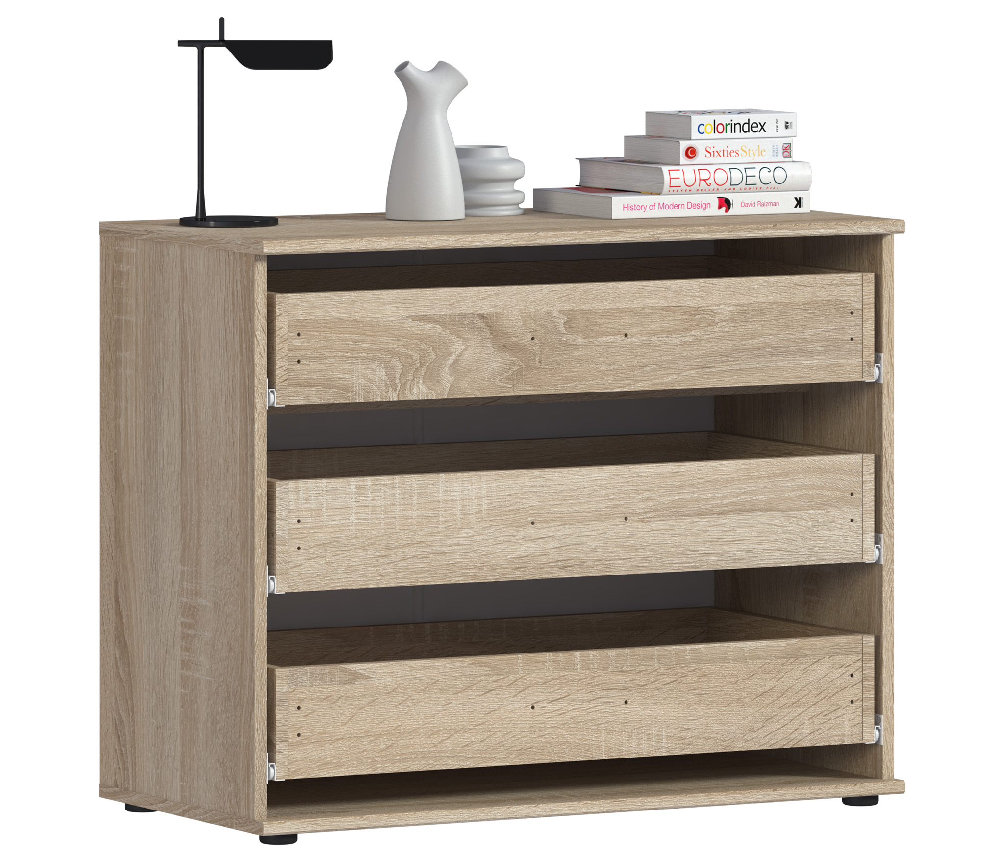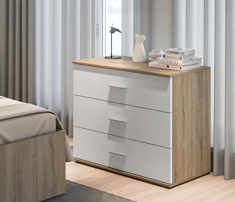Комод Мамбо СБ-2540/1 – оптимальное решение вопроса хранения. Он будет хорошо смотреться в гостиной, прихожей, спальне или в кабинете. Комод Мамбо имеет довольно компактные габариты – ширина 88 см, высота 71 см и глубина 44 см. Однако его обладатели никогда не жаловались на вместительность. В трех больших выдвижных ящиках можно разместить множество нужных вещей. Выполнен комод Мамбо из современного материала.