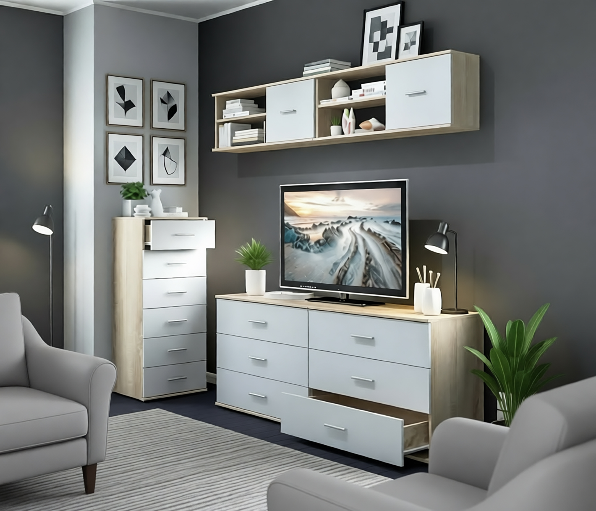 Комод Мамбо СБ-2540 (Дуб Сонома/Белый)