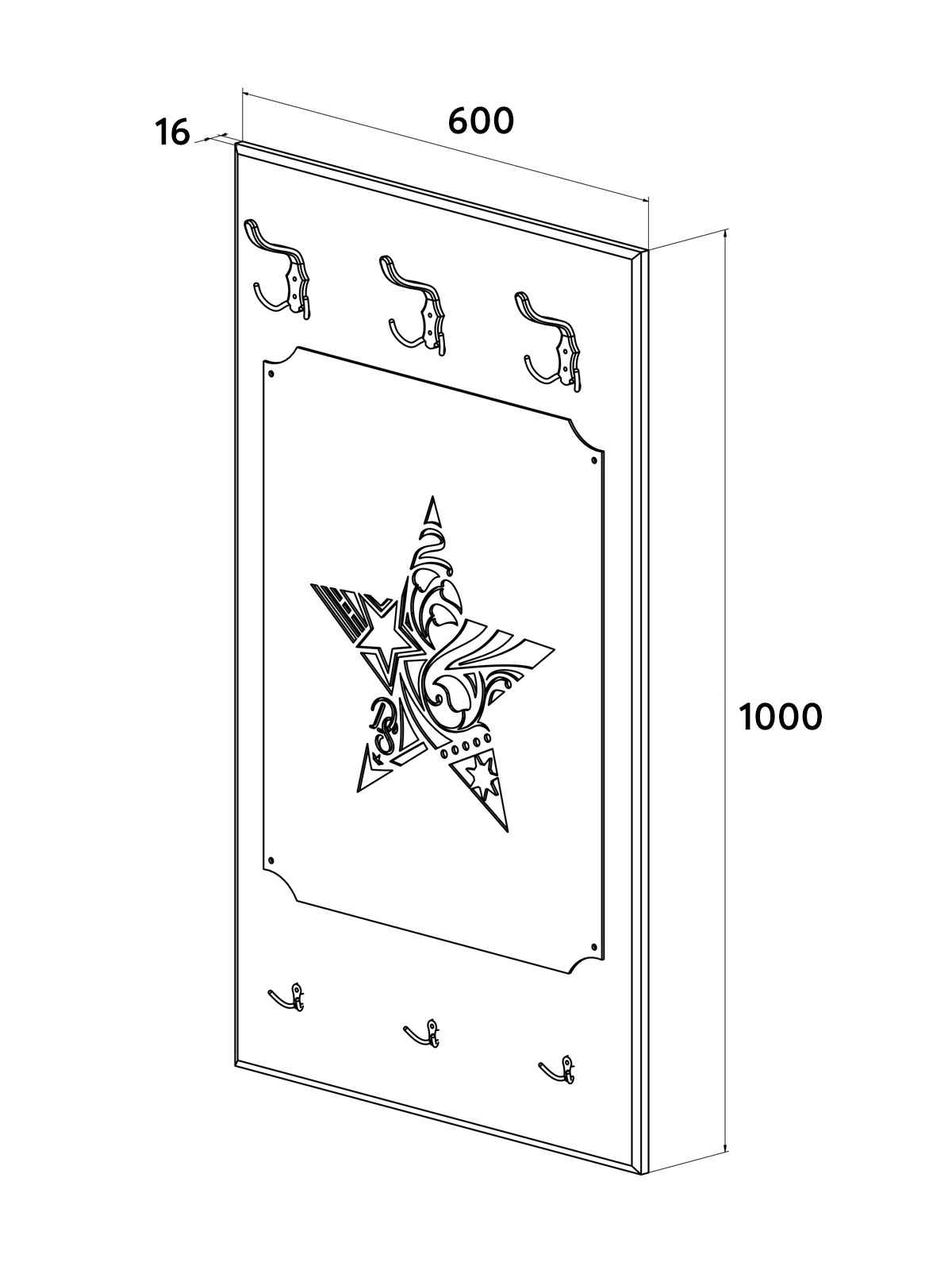 Размеры модуля (ш/г/в) в мм: 600х16х1000.