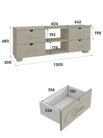 Материал корпуса/фасада: ЛДСП/МДФ. Цвет корпуса/фасада: белое дерево. Размеры модуля (ш/г/в) в мм: 1300х300х480. Особенности: столешница изготовлена из МДФ толщиной 25 мм. В ящиках используются телескопические направляющие полного выдвижения.