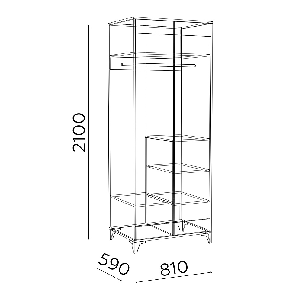 Ширина, мм: 810 Высота, мм: 2100 Глубина, мм: 590