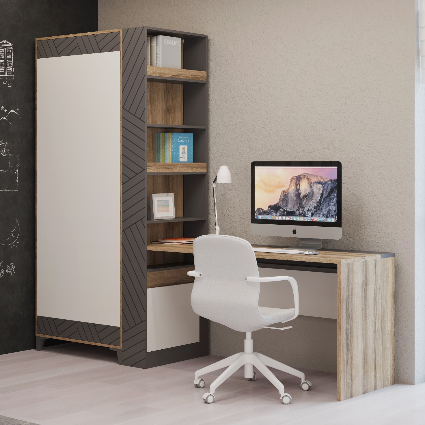 Коллекция Гринвич – сочетание стильных и функциональных модулей для подростковой комнаты. Благодаря универсальному цветовому сочетанию мебель впишется в любой по стилю интерьер. Среди преимуществ шкафов: геометрический принт на фасадах.Фурнитура европейского производителя Titus — гарантия плавного закрывания и долгого срока службы. Отсутствие лицевой фурнитуры — система "рush-to-open".