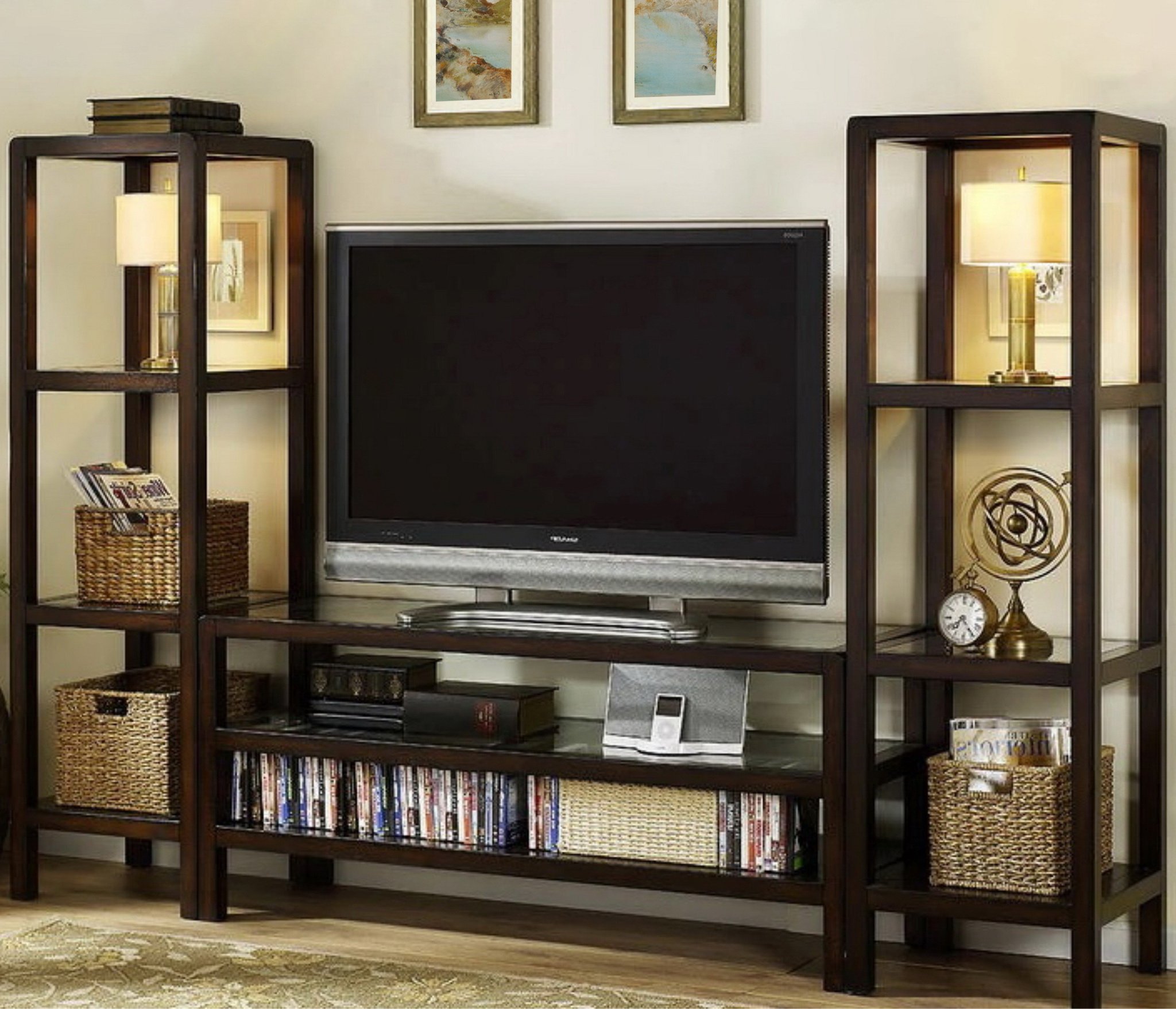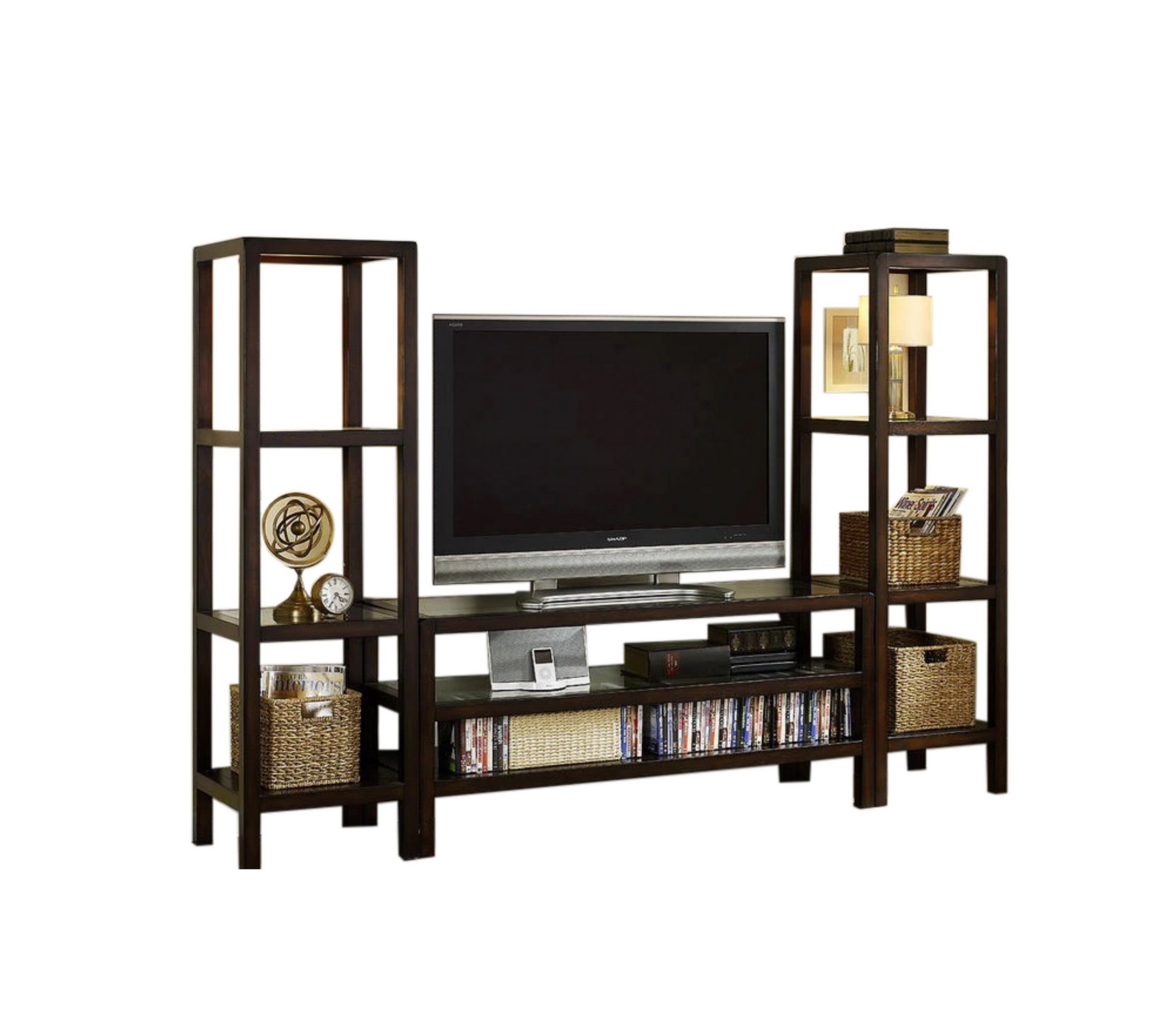 со стеллажом, глянцевые фасады, С полками, С ТВ тумбой