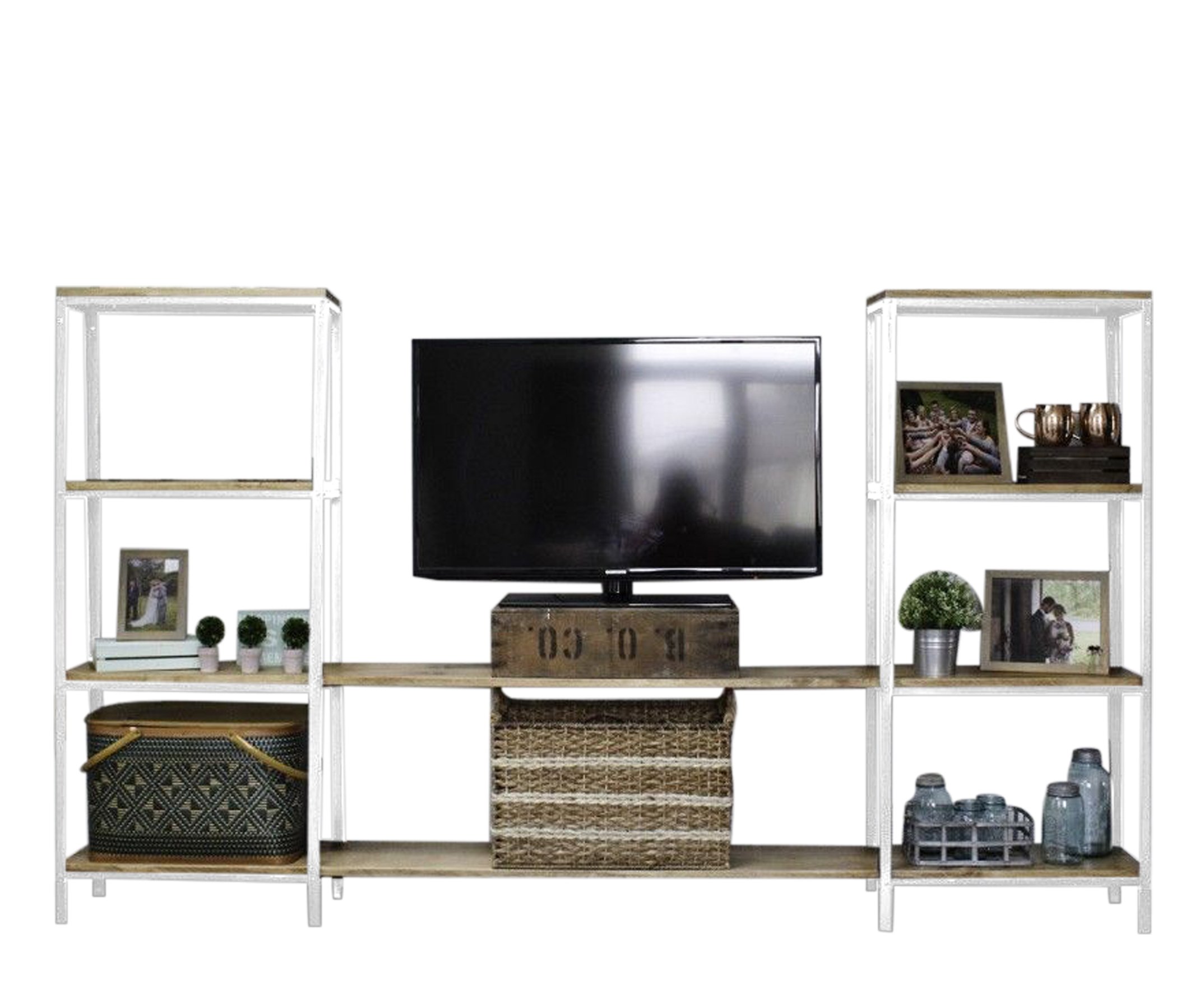 С ТВ тумбой , со стеллажом, глянцевые фасады, С полками