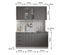 Глубина верхних и нижних шкафов указана с учетом фасада.