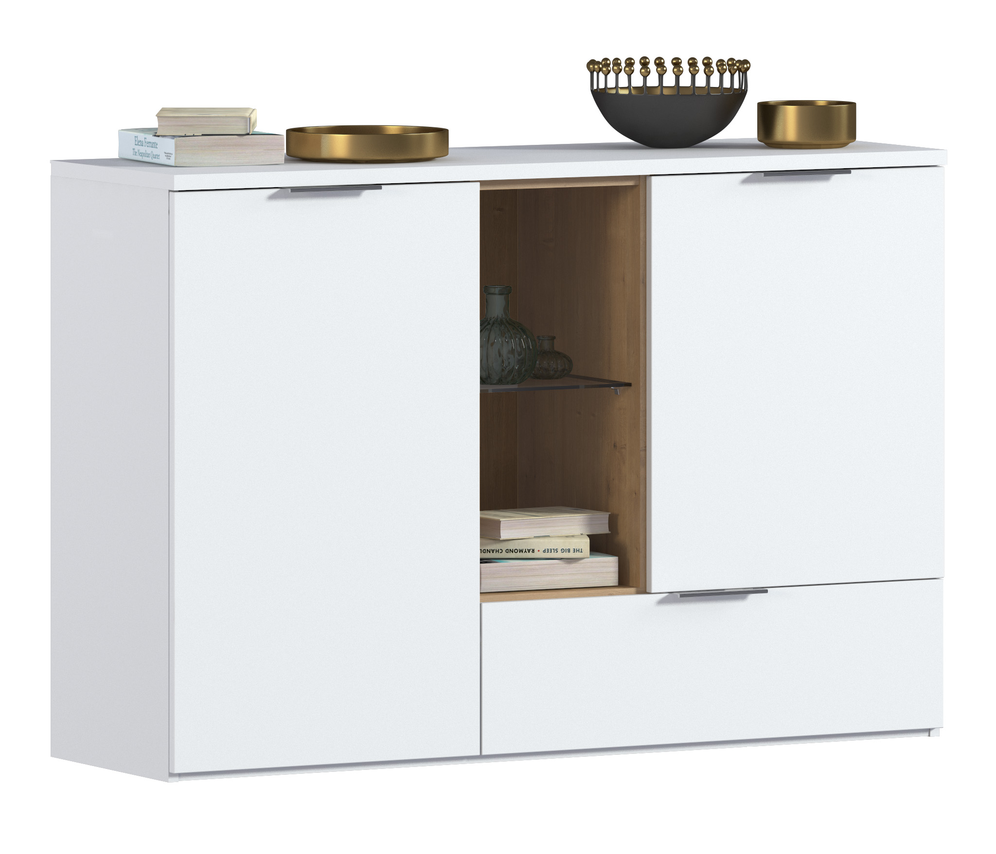 Комод Мальта СБ-3264 Белый,Дуб Гамильтон/МДФ Белый (Белый,Дуб Гамильтон)
