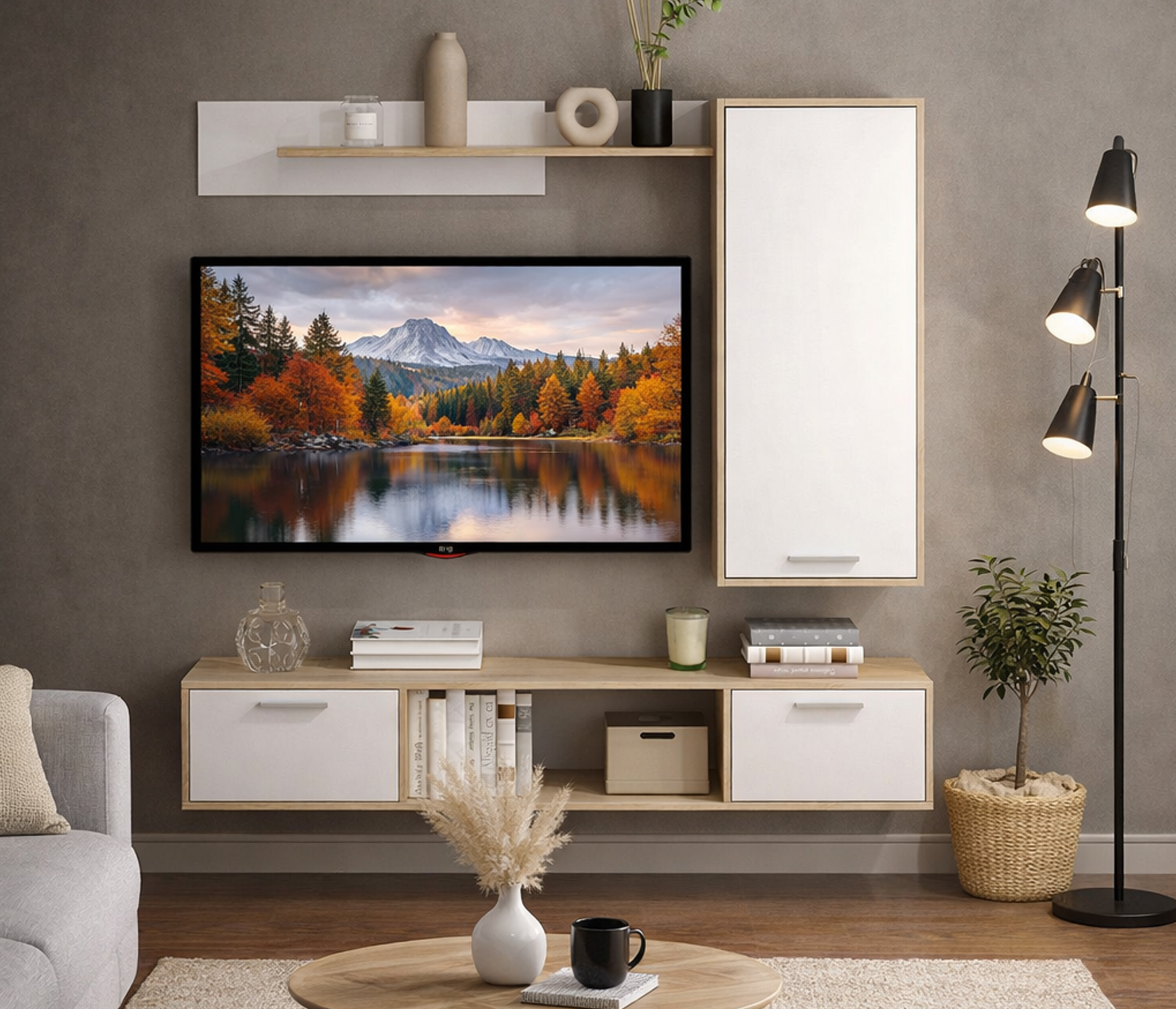 Стенка Милан СБ-3265/1 идеально подходит для тех, кто ценит стиль, удобство и качество. ¶Материал корпуса: ЛДСП цвет Серый Перламутровый, Дуб Гамильтон натуральный