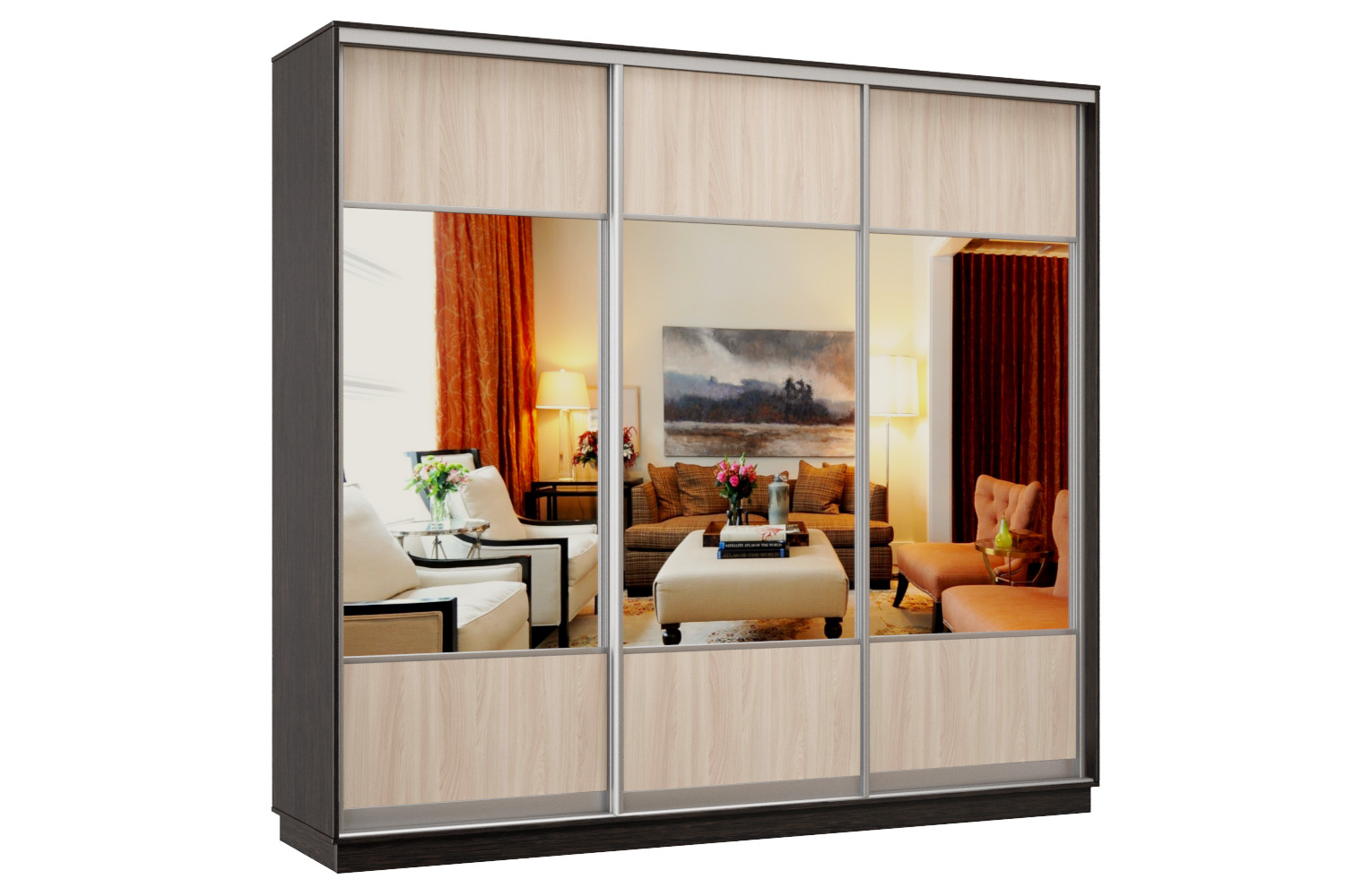Шкаф-купе Премьер Лайт 57 (05;05;05) трехдверный (Венге/Ясень шимо светлый)
