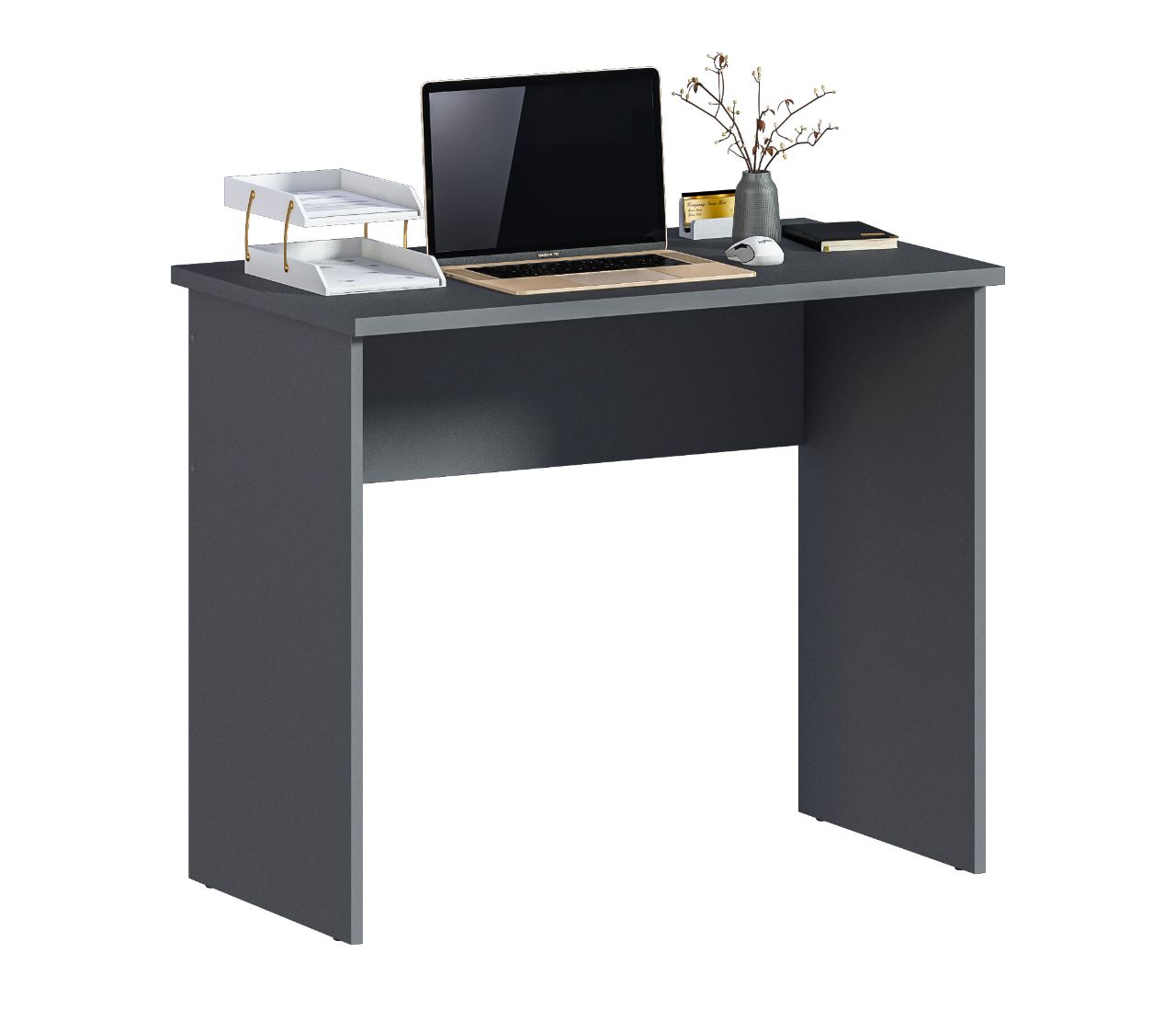 Габаритные размеры – ширина 90 см, высота 75 и глубина 50 см. Стол произведен из современного и экологичного материала ЛДСП. Минималистичный дизайн и цвет стола не создают ощущение громоздкости. Материал отделки легок в уходе.
