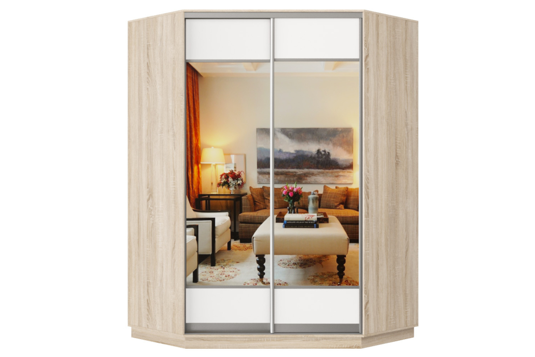 Шкаф-купе Премьер Лайт 71 угловой (05;05) двухдверный (Дуб Сонома/Белый) Код I0000314703