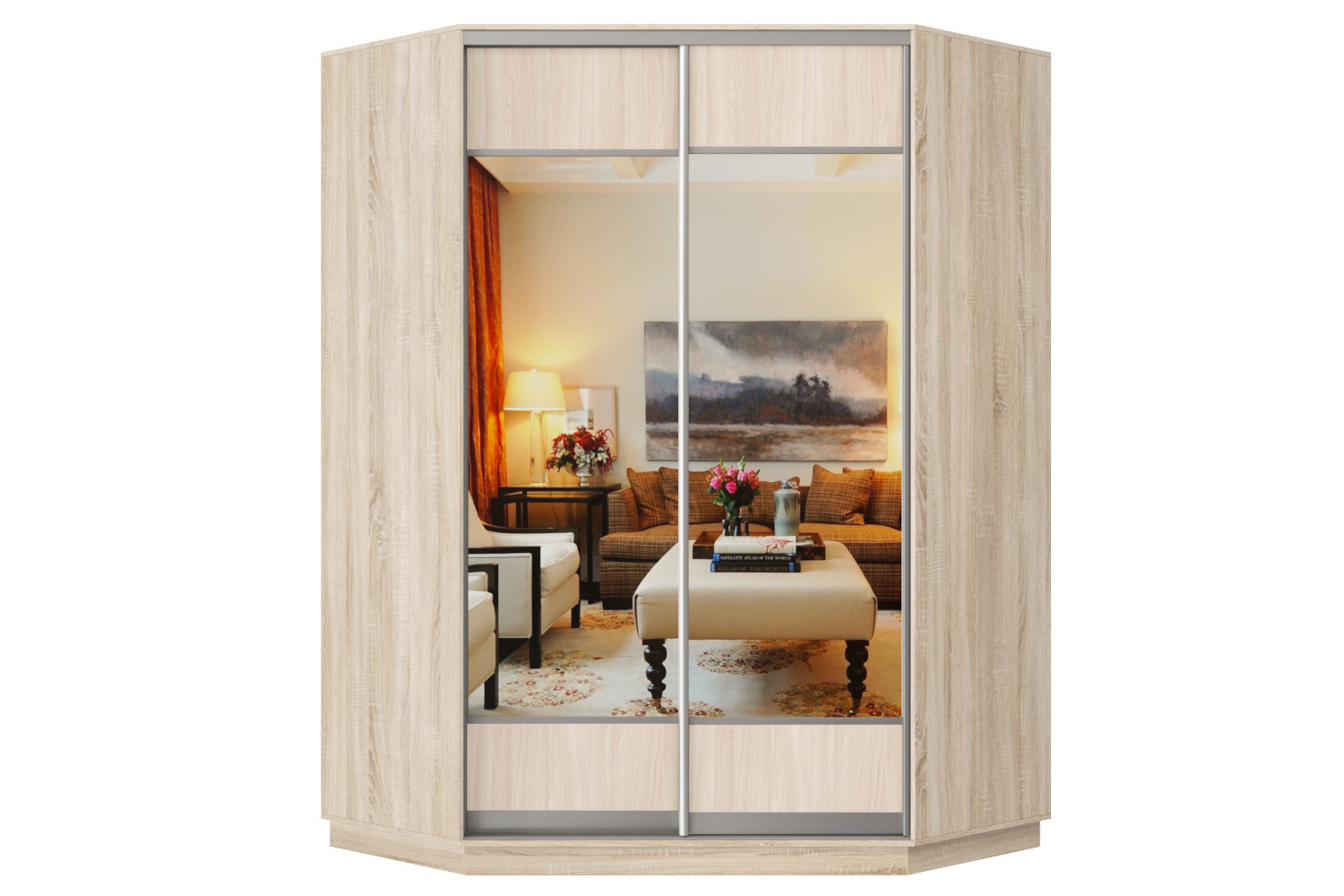 Шкаф-купе Премьер Лайт 71 угловой (05;05) двухдверный (Дуб сонома/Ясень шимо светлый) Код I0000314705