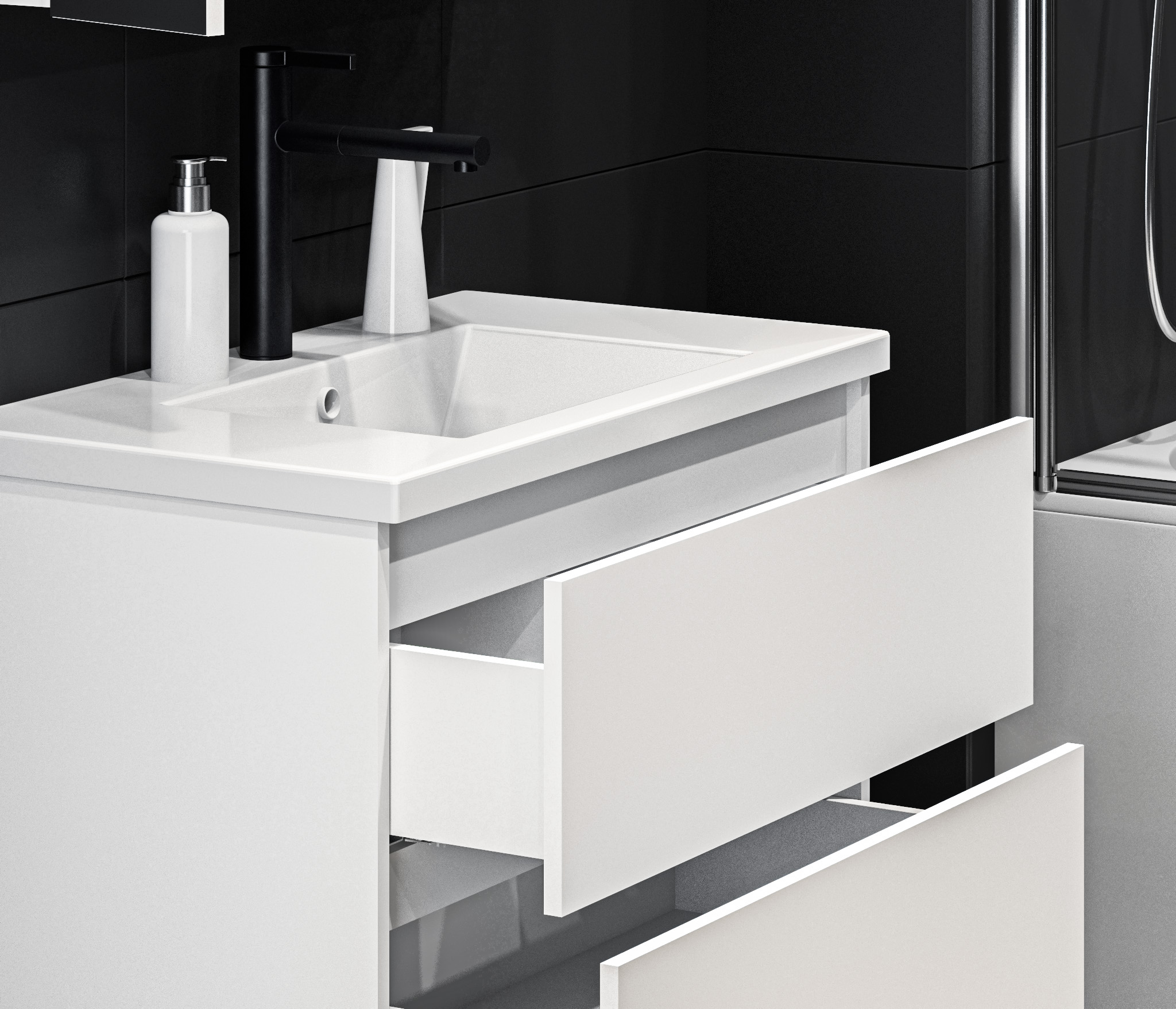 Навесная тумба Люкс СБ-3157 – продуманное решение вопроса, связанного с хранением в ванной комнате. Тумба является элементом модульной коллекции Люкс, разработанной для современных ванных комнат. Тумба предназначена для установки под раковину, но при желании можно приобрести столешницу. Габаритные размеры – ширина 80 см, высота 57 см, глубина 45 см. Тумба крепится к стене и оснащена двумя вместительными ящиками, каждый из которых может выдержать до 7 кг нагрузки. Корпус выполнен из прочного и современного ЛДСП с отделкой белого цвета. В комплект входят крепёжные детали.