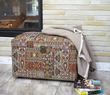 Банкетка "Восточный ковер" с ящиком для хранения в восточном стиле сделан из гобелена. Изысканный сундук удобен в качестве банкетки или пуфика - имеет мягкое сиденье и выдерживает вес сидящего человека до 150 кг. Внутри сундука - огромное пространство, где можно хранить все: от детских игрушек до постельного белья, одежды, обуви. Пластиковые ножки, на которых стоит сундук, не царапают пол. Но и переносить его тоже достаточно легко - вес сундука всего около 7 кг. Пуфик в прихожую, коридор, в спальню, в гостинную, в детскую, в кухню, в зал прекрасно впишется в любой интерьер офиса, дома или дачи. Пуф мягкий идеальный подарок мужчине или женщине на свадьбу, годовщину или юбилей. Подарок любимой, маме, жене, подруге. Сундук подойдет к любому интерьеру дома, дачи,и смотрится дорого и презентабельно. Элегантный пуфик банкетка будет служить местом для сидения и дополнительным местом для хранения. Пуфики удобны в качестве тумбы, прикроватного туалетного столика, полки, обувницы, стула, коробки для хранения. В ящик банкетки можно сложить обувь, книги, игрушки , постельное белье. Пуф с крышкой , банкетки разных цветов , размеров и фактур : большие, высокие, круглые, велюр, из рогожки, на ножках и без, из экокожи, ткани, с каретной стяжкой представлены в нашем магазине. Банкетку удобно использовать для сидения и в качестве подставки для ног или лежака для животных. Прочный каркас, качественные материалы, эксклюзивный дизайн, стильная обивка не оставят равнодушными взрослых и детей. Наполнитель для пуфа упругий поролон. Такой пуфик-банкетка альтернатива круглому пуфу, бескаркасному пуфу, отличная замена пуфа мешка.