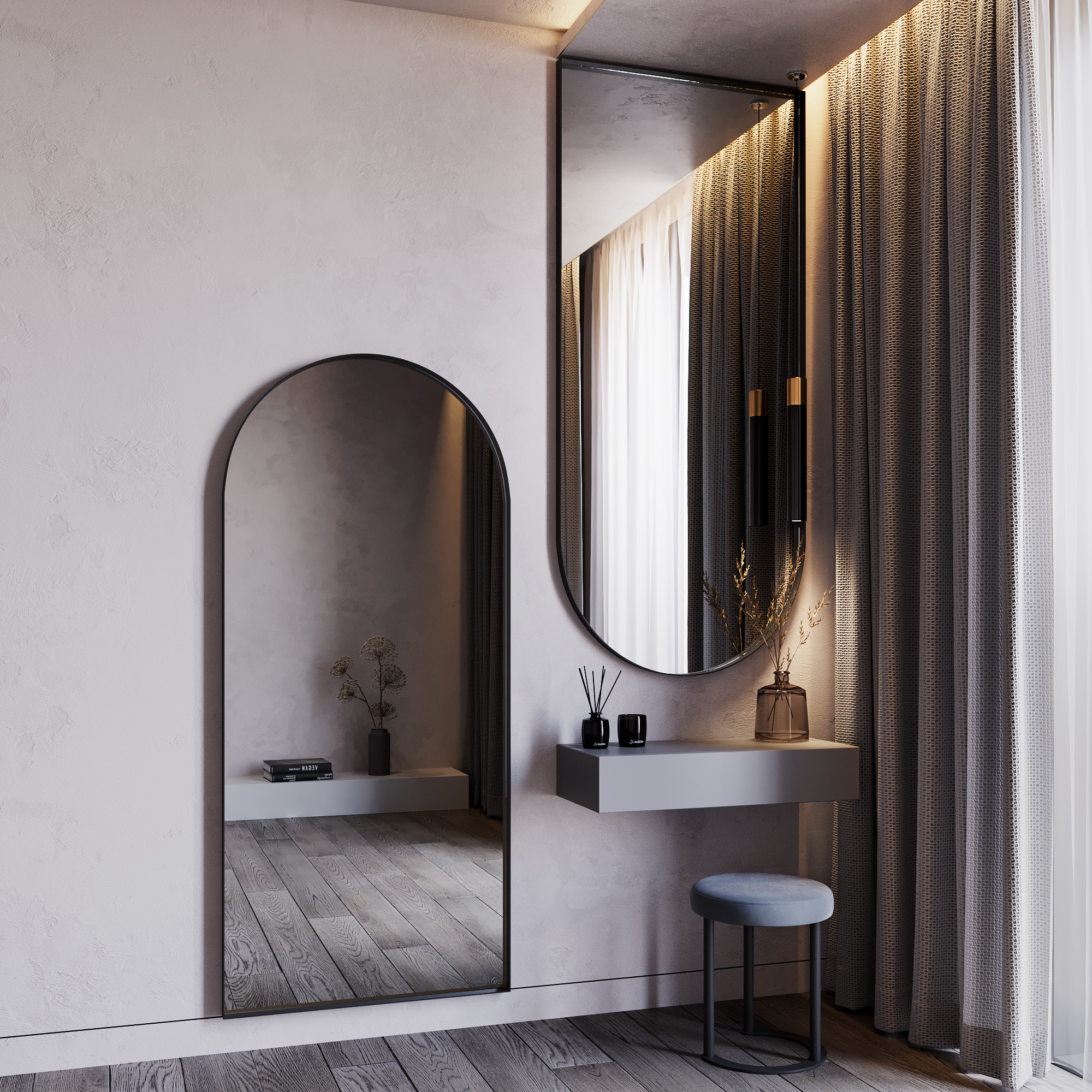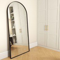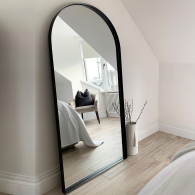 Среди зеркал в полный рост представленная модель в виде арки пользуется особой популярностью. Секреты просты – высокое качество, надёжность и большие функциональные возможности. Это отличное примерочное зеркало, которое можно использовать как в приставном варианте, так и в настенном. Рама зеркала выполнена из прочного металла и обеспечивает отличную устойчивость конструкции. Зеркальное полотно является продукций известного бельгийского бренда AGC, и отличатся высоким качеством. На тыльной стороне рамы есть специальные элементы для крепления к стене.