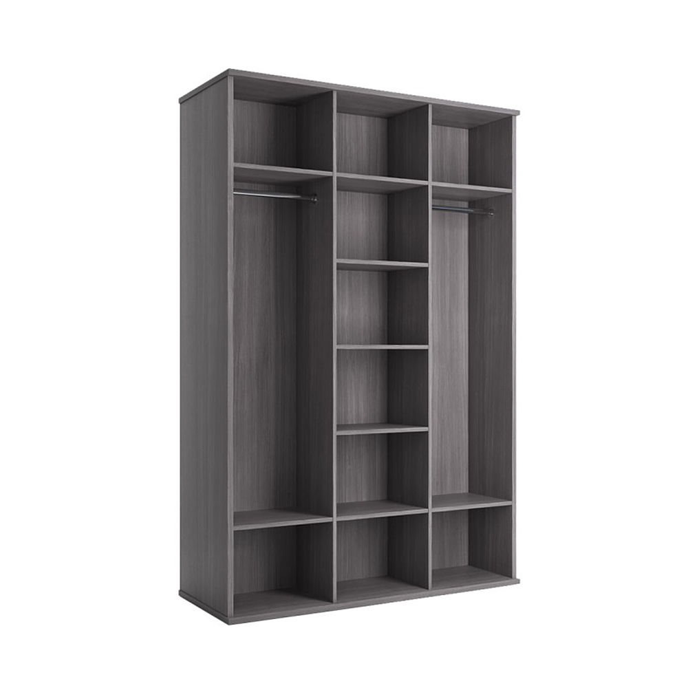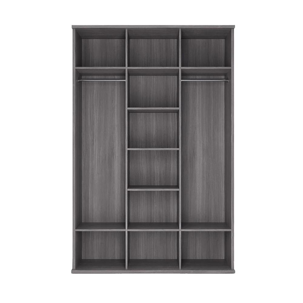 Благодаря габаритам изделия модель разместит множество ваших вещей, одежды и обуви, ведь глубина составляет 579 мм, а благодаря высоте 2217 мм вы сможете с легкостью хранить одежду на плечиках. Конструкция модуля разделена на три зоны и оборудована двумя штангами и бельевыми полками.