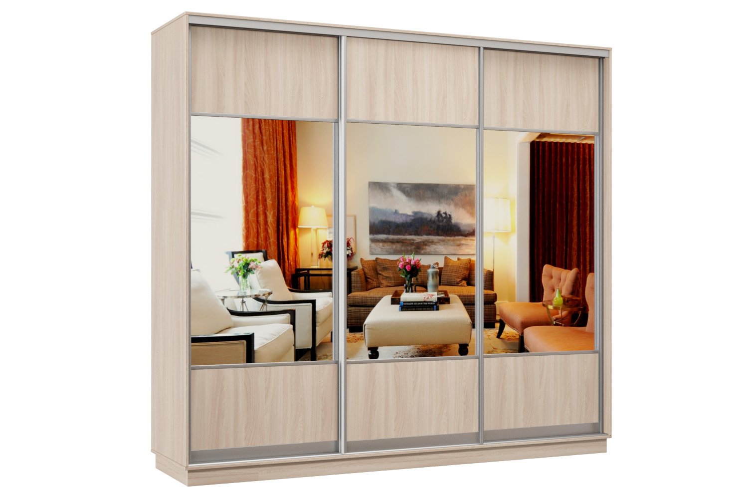 Шкаф-купе Премьер Лайт 63 (05;05;05) трехдверный (Ясень шимо светлый)