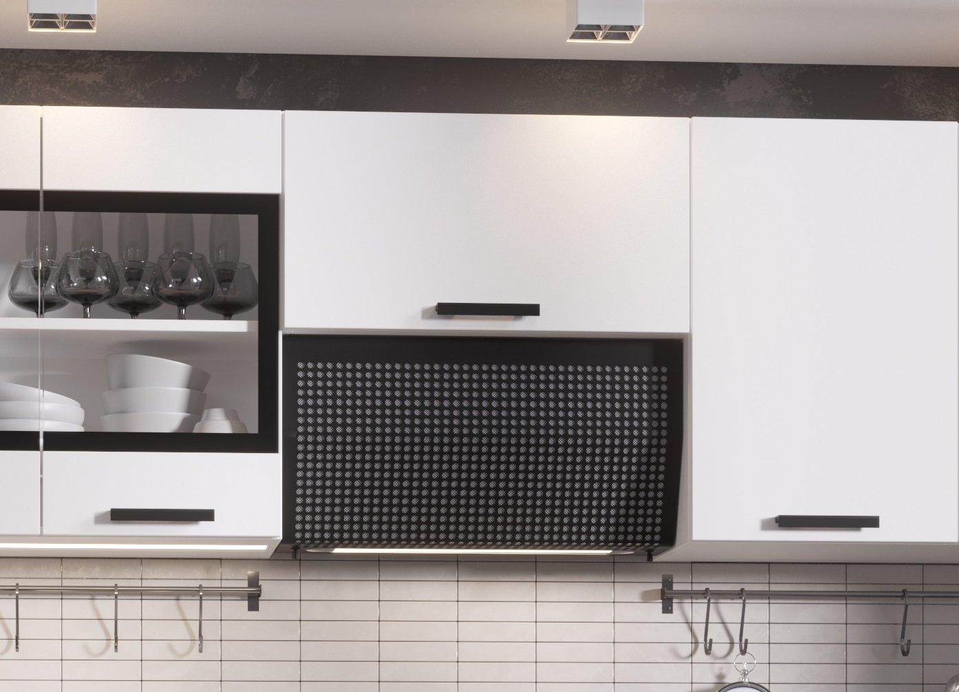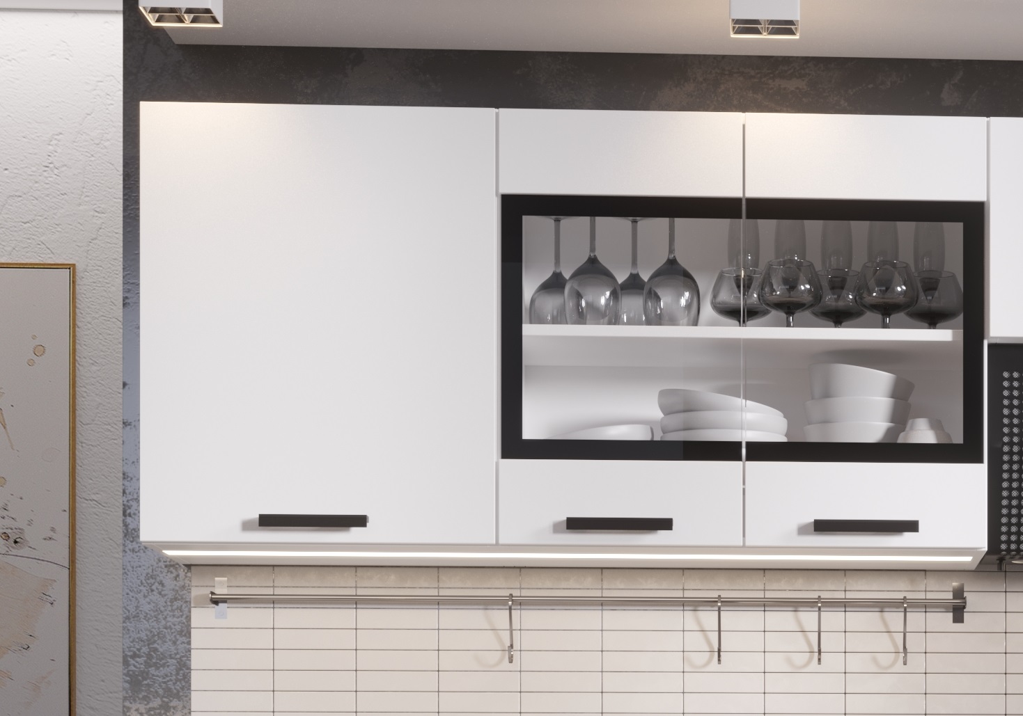 три верхних шкафа: первый шкаф - общая ширина 1200мм (500мм , 700мм со стеклом). Внимание! Это единый элемент, разъединить шкафы невозможно! Второй шкаф: на 800мм. Высота 626мм. Глубина 270 мм. Третий шкаф с газлифтом - на 600мм, высота 310 мм, глубина 270 мм.