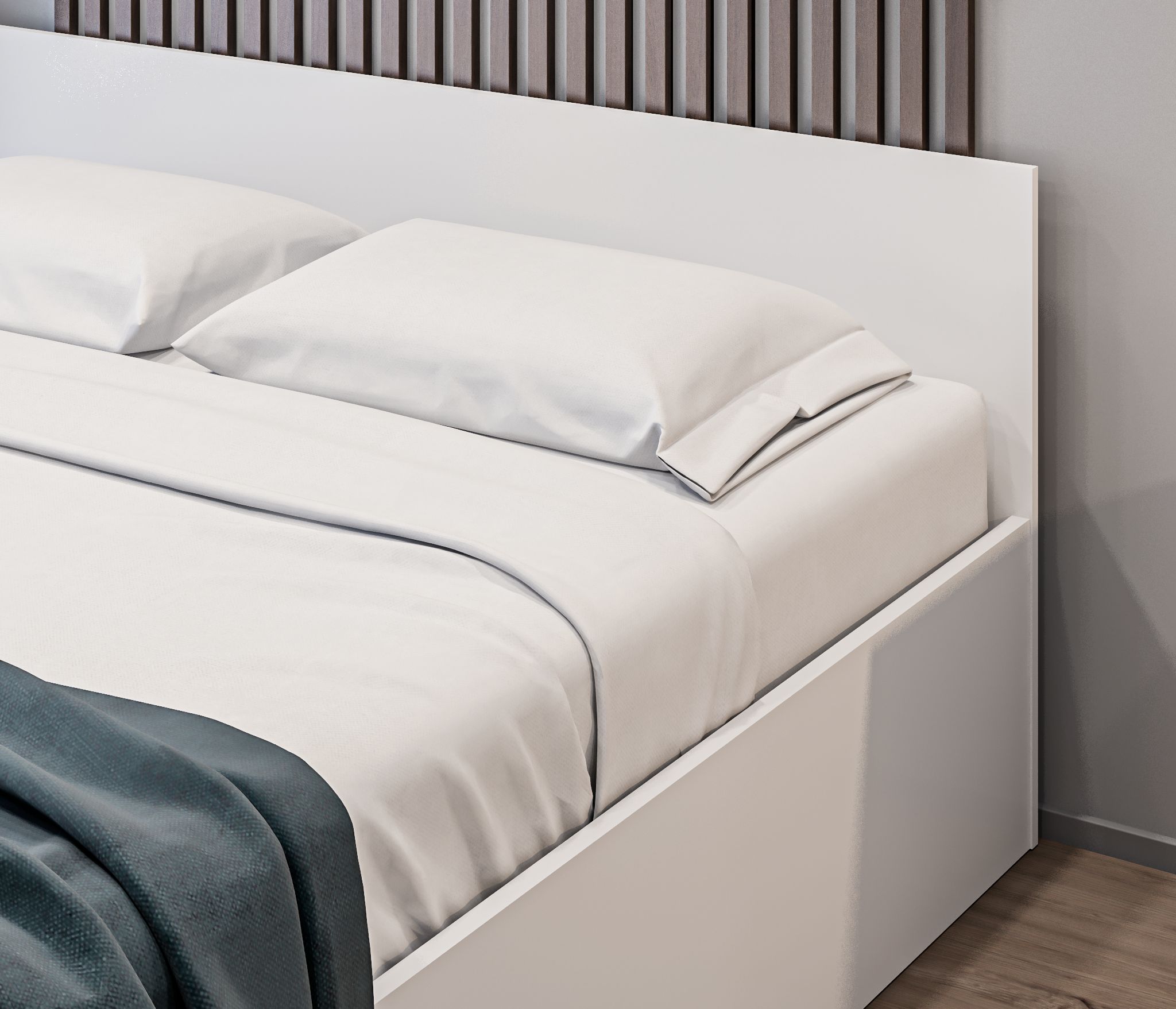 Качественный материал, минималистический дизайн, большое пространство для хранения, легкая сборка, удобно, что комплект кровати упакован в три разных коробки - легко перевозить и заносить в помещение в одиночку