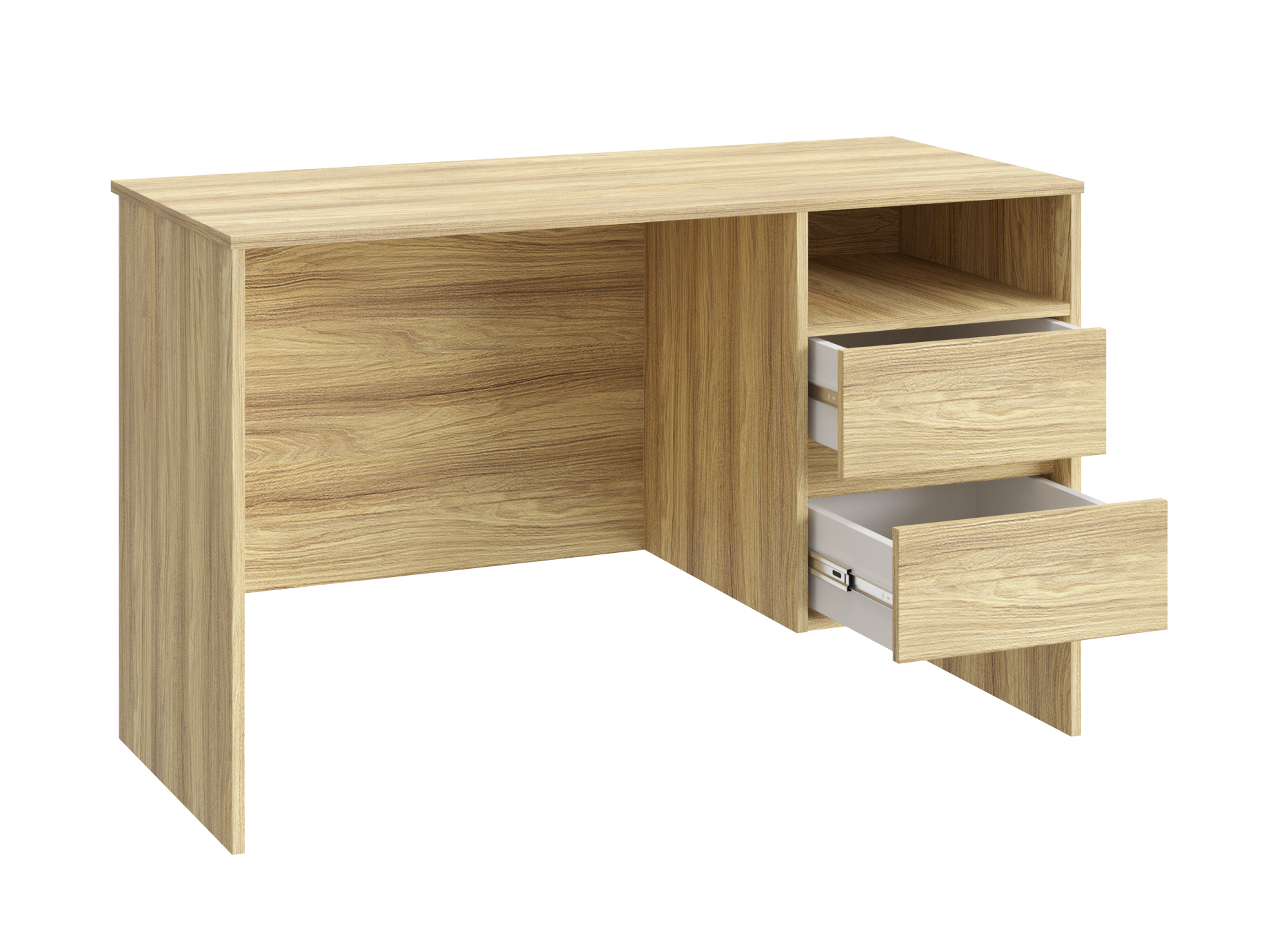 Письменный стол Оскар ОС-23 идеально подойдет для создания рабочего места в небольшом помещении. Благодаря своей универсальности стол с ящиками и нишей может использоваться как компьютерный, офисный, письменный или стол для ноутбука. С его помощью вы сможете организовать порядок на своем рабочем месте. Стол гармонично впишется в любой стиль интерьера. Современный и простой дизайн делает его идеальным для использования дома и в офисе. Свес крышки в 30 мм обеспечит прилегание к стене с любым плинтусом. Фурнитура: телескопические направляющие полного выдвижения без доводчиков, ручки пластик. Регулируемые опоры позволяют компенсировать возможные неровности пола.
