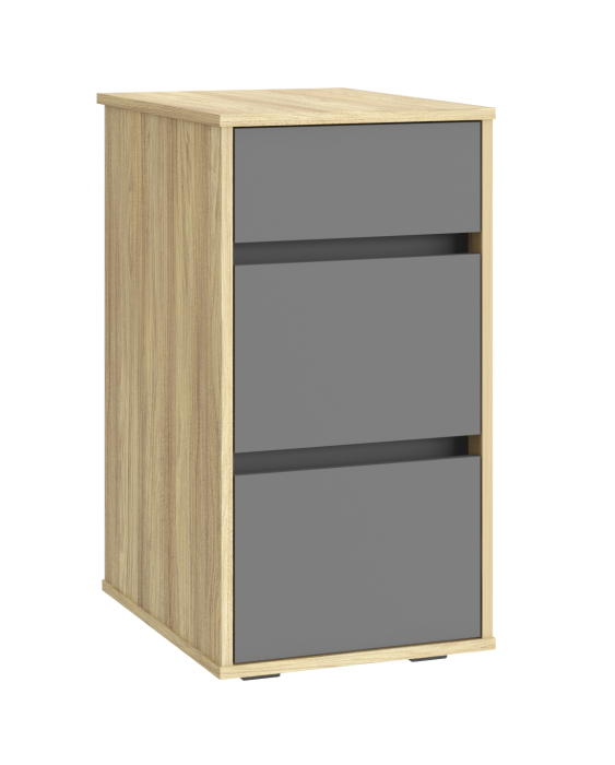 Тумба Оскар ОС-10 выполнена в минималистичном дизайне, что придаст лаконичность вашему интерьеру. Оснащена тремя ящиками на телескопических направляющих полного выдвижения без доводчиков. Функциональная тумба для рабочего места станет неотъемлемой частью Вашего дома, так как вместительные ящики полного выдвижения позволят хранить в них дорогие для Вас вещи. Отсутствие лицевой фурнитуры подчеркнет индивидуальность интерьера Вашего дома, детской комнаты, а также послужит функциональным местом для хранения документов в рабочем кабинете. Тумба с ящиками - это удобное дополнение к письменному или компьютерному столу, прекрасно подойдет к столам ОС-22, ОС-25. Регулируемые опоры позволяют компенсировать возможные неровности пола.