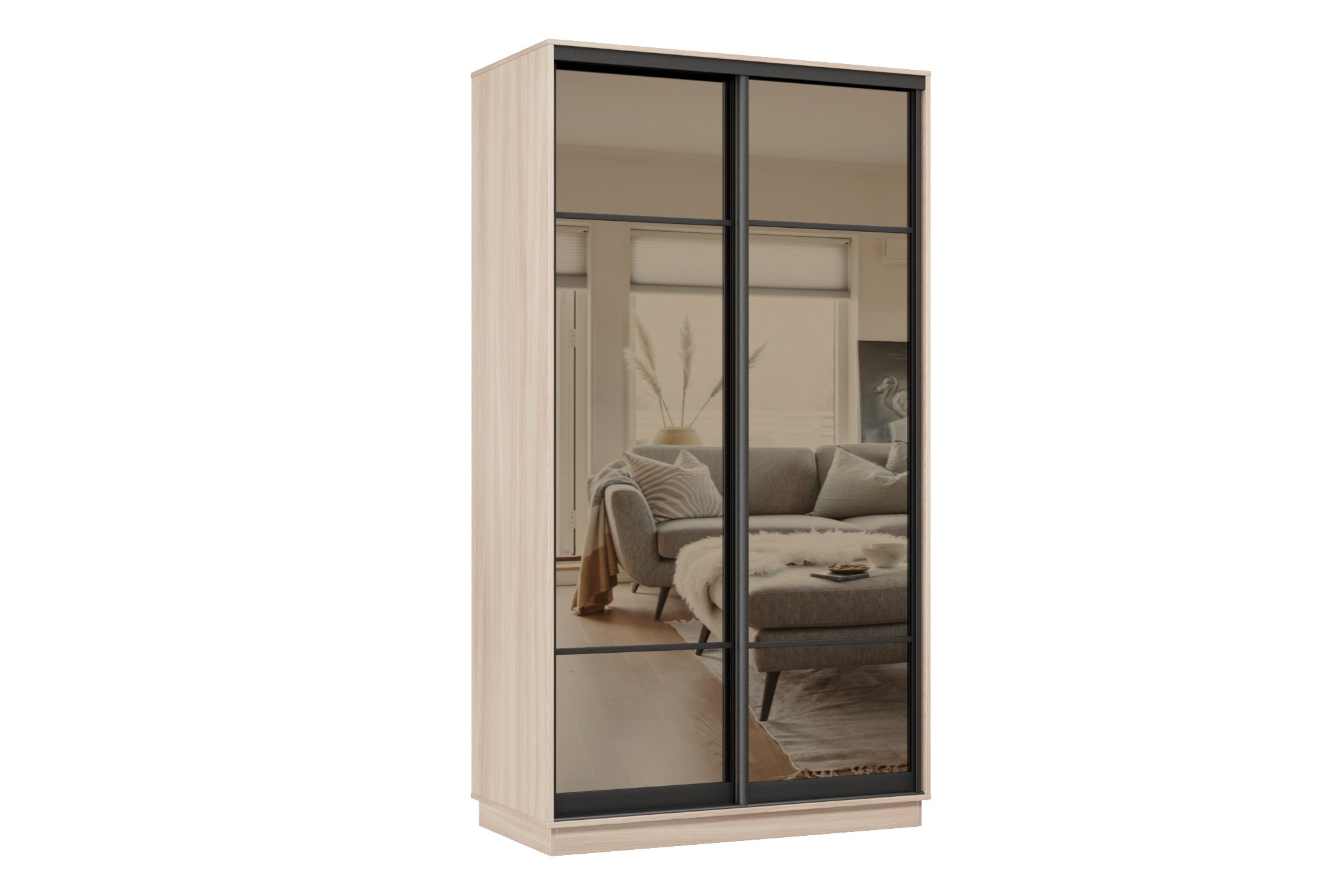 Отзывы о Столплит Шкаф-купе Премьер 10 (11ЗБ;11ЗБ) фасады зеркало бронза/двухдверный/Профиль чёрный муар Ясень шимо светлый