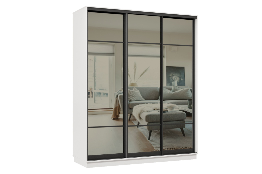 Отзывы о Столплит Шкаф-купе Премьер 21 (11ЗГ;11ЗГ;11ЗГ) фасады зеркало графит/трёхдверный/Профиль чёрный муар Белый