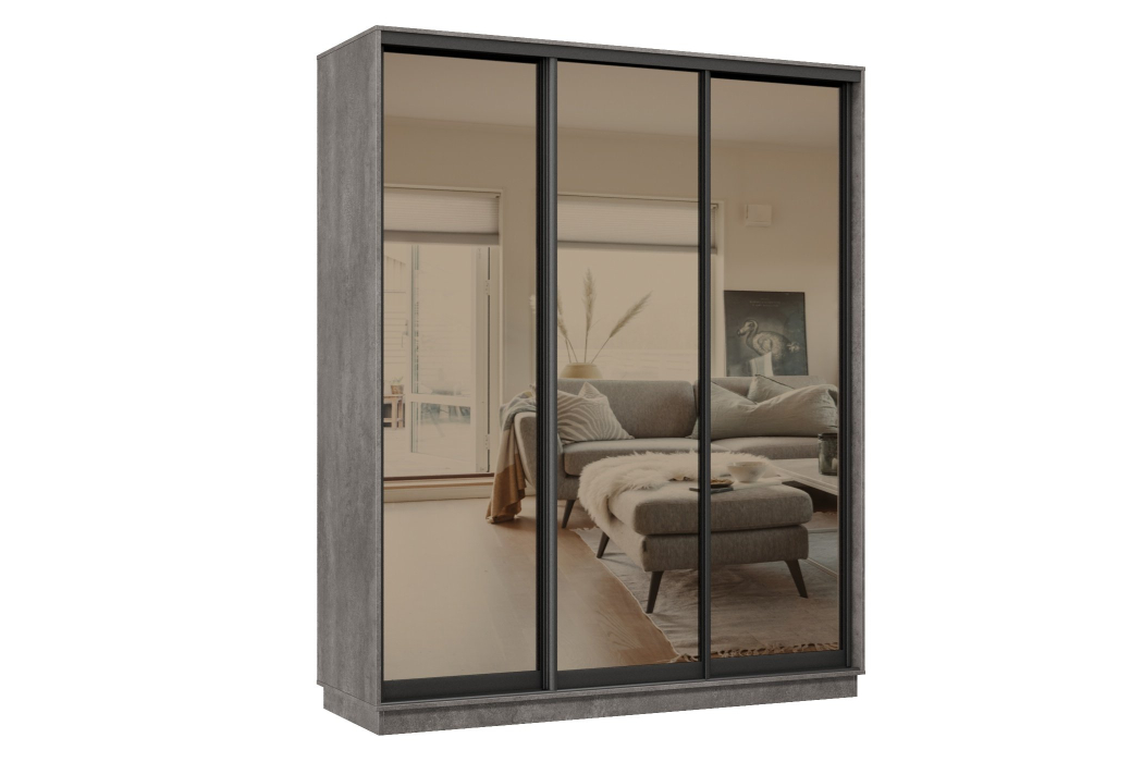 Отзывы о Столплит Шкаф-купе Премьер 22 (01ЗБ;01ЗБ;01ЗБ) фасады зеркало бронза/трёхдверный/Профиль чёрный муар Бетон